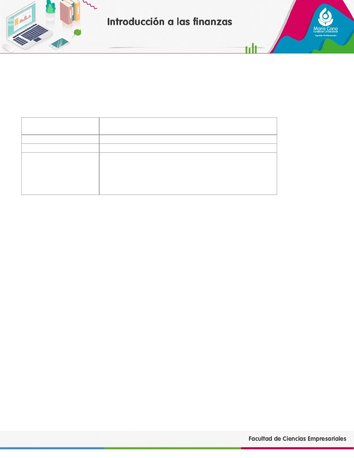 Facultad de Ciencias Empresariales 3Introducción a las finanzas María Cano Fundación Universitaria Vigilada MirEducación