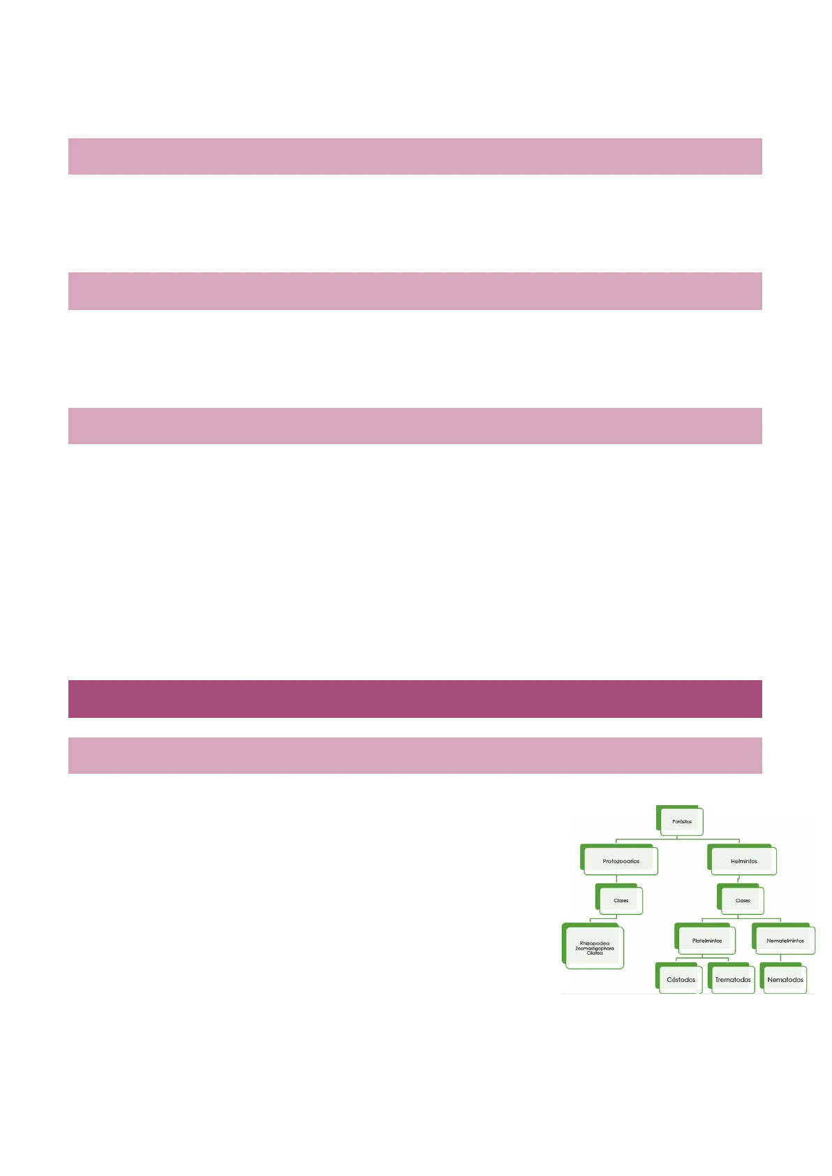 Parásitos Protozooarios Helmintos Clases Clases Rhizopodea Zoomastigophora Platelmintos Nematelmintos ashgop Cilatea Céstodos Trematodos Nematodos