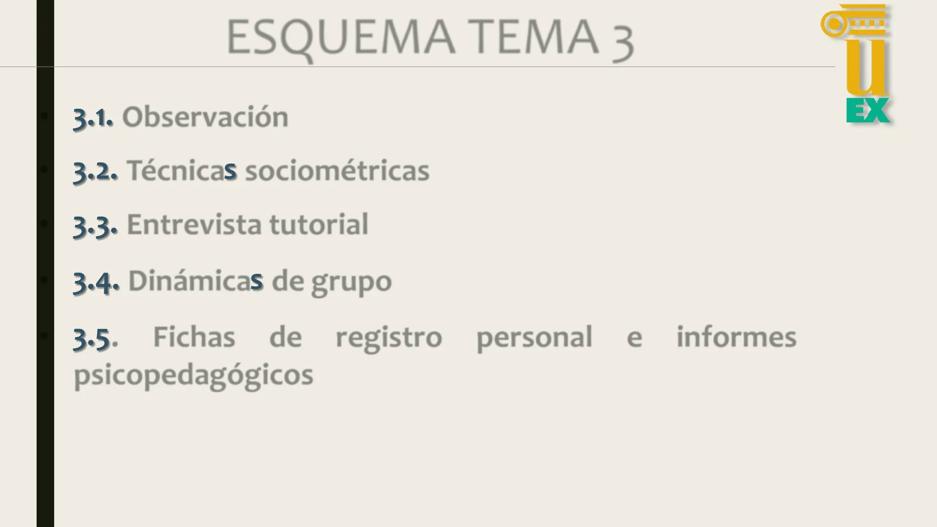 I EX TEMA 3: TÉCNICAS E INSTRUMENTOS AL SERVICIO ZEKAICIO DE LA TUTORIA DET Asignatura Acción tutorial y educación familiar Grado en Educación Primaria Curso 2024-2025 I Prudencia Gutiérrez Esteban Departamento Ciencias de la Educación Área Didáctica y Organización Escolar pruden@unex.es