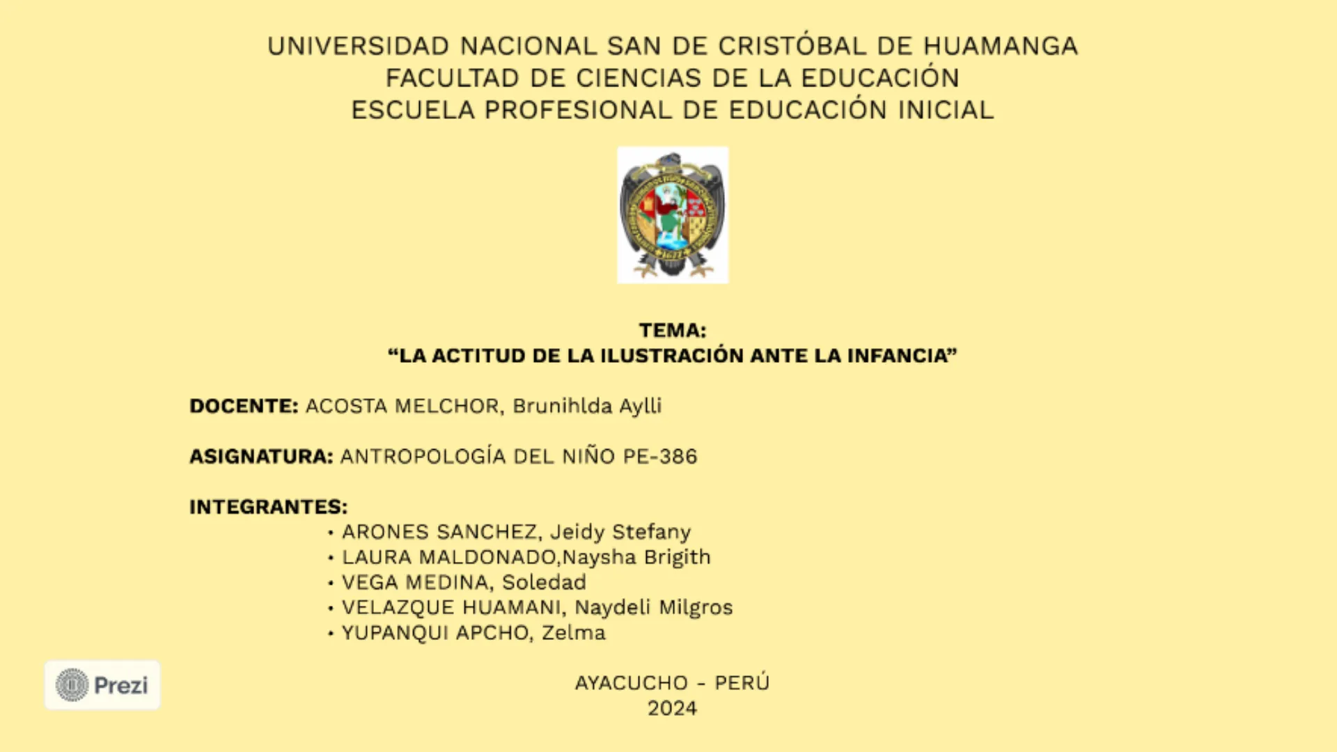 -........... ------ ... ..... ... .. -.. ...... ---- --- --- ---- - --- LIRA CONDICIONES DE VIDA PreziUNIVERSIDAD NACIONAL SAN DE CRISTÓBAL DE HUAMANGA FACULTAD DE CIENCIAS DE LA EDUCACIÓN ESCUELA PROFESIONAL DE EDUCACIÓN INICIAL TEMA: "LA ACTITUD DE LA ILUSTRACIÓN ANTE LA INFANCIA" DOCENTE: ACOSTA MELCHOR, Brunihlda Aylli ASIGNATURA: ANTROPOLOGÍA DEL NIÑO PE-386 INTEGRANTES: · ARONES SANCHEZ, Jeidy Stefany . LAURA MALDONADO, Naysha Brigith · VEGA MEDINA, Soledad · VELAZQUE HUAMANI, Naydeli Milgros · YUPANQUI APCHO, Zelma Prezi AYACUCHO - PERÚ 2024