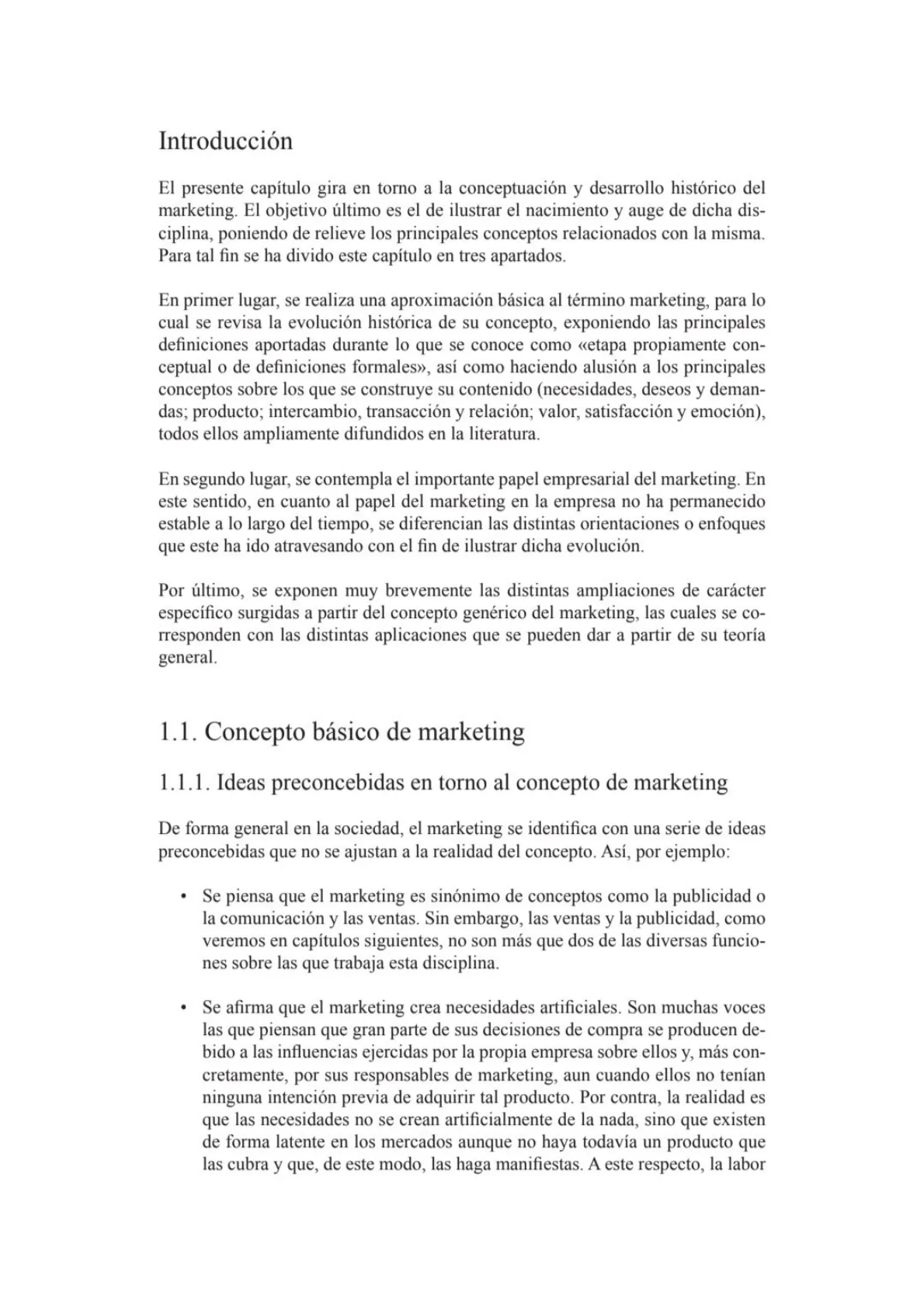 El segundo bloque pretende mostrar los principales elementos del marketing den- tro de su vertiente analítica. En este sentido se han destacado, principalmente, laIntroducción El presente capítulo gira en torno a la conceptuación y desarrollo histórico del marketing. El objetivo último es el de ilustrar el nacimiento y auge de dicha dis- ciplina, poniendo de relieve los principales conceptos relacionados con la misma. Para tal fin se ha divido este capítulo en tres apartados.
