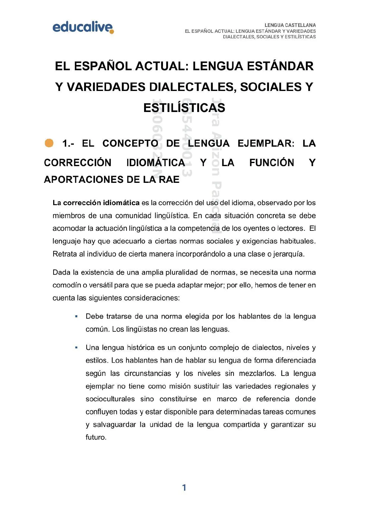 1 .- EL CONCEPTO DE LENGUA EJEMPLAR: LA