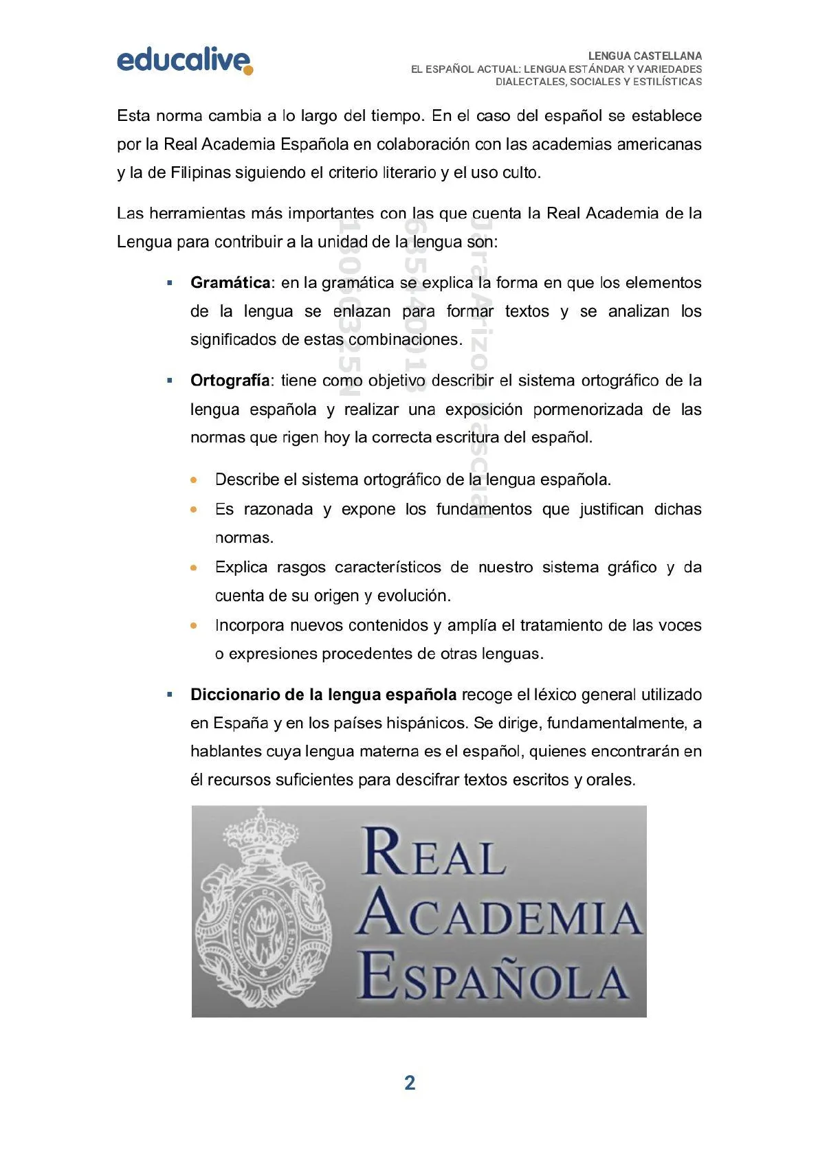 EL ESPAÑOL ACTUAL: LENGUA ESTÁNDAR