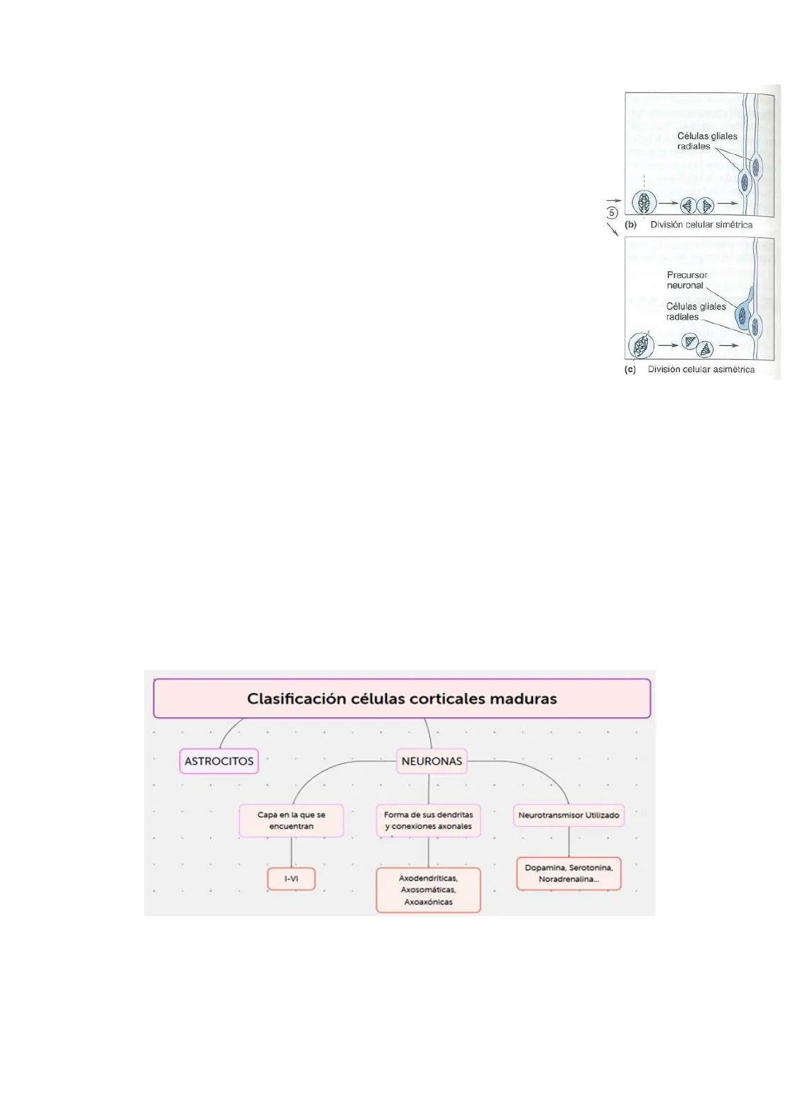 Células gliales radiales 5 > (b) División celular simétrica Precursor neuronal Células gliales radiales (c) División celular asimétrica