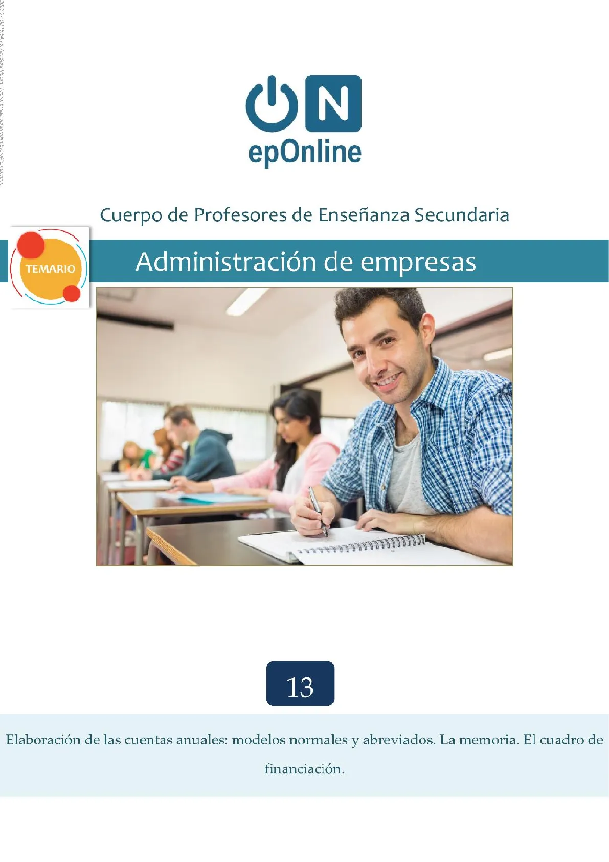C N epOnline Cuerpo de Profesores de Enseñanza Secundaria TEMARIO Administración de empresas 13 Elaboración de las cuentas anuales: modelos normales y abreviados. La memoria. El cuadro de financiación. 2023-07-02 18:54:15: AE: Sem Medina Tejero: Email: saramedinatejero@gmail.com;Tema 13 Administración de empresas www.eponline.es