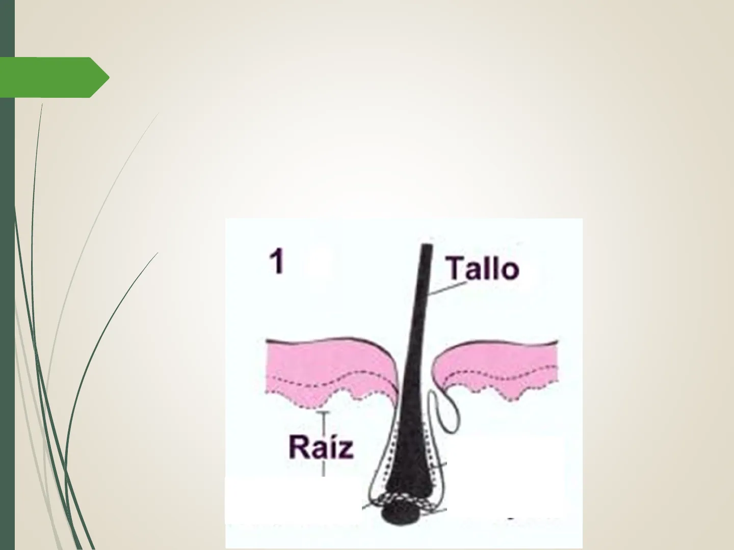 QUE SE HUNDE EN LA DERMIS sobre la que se asienta la raíz