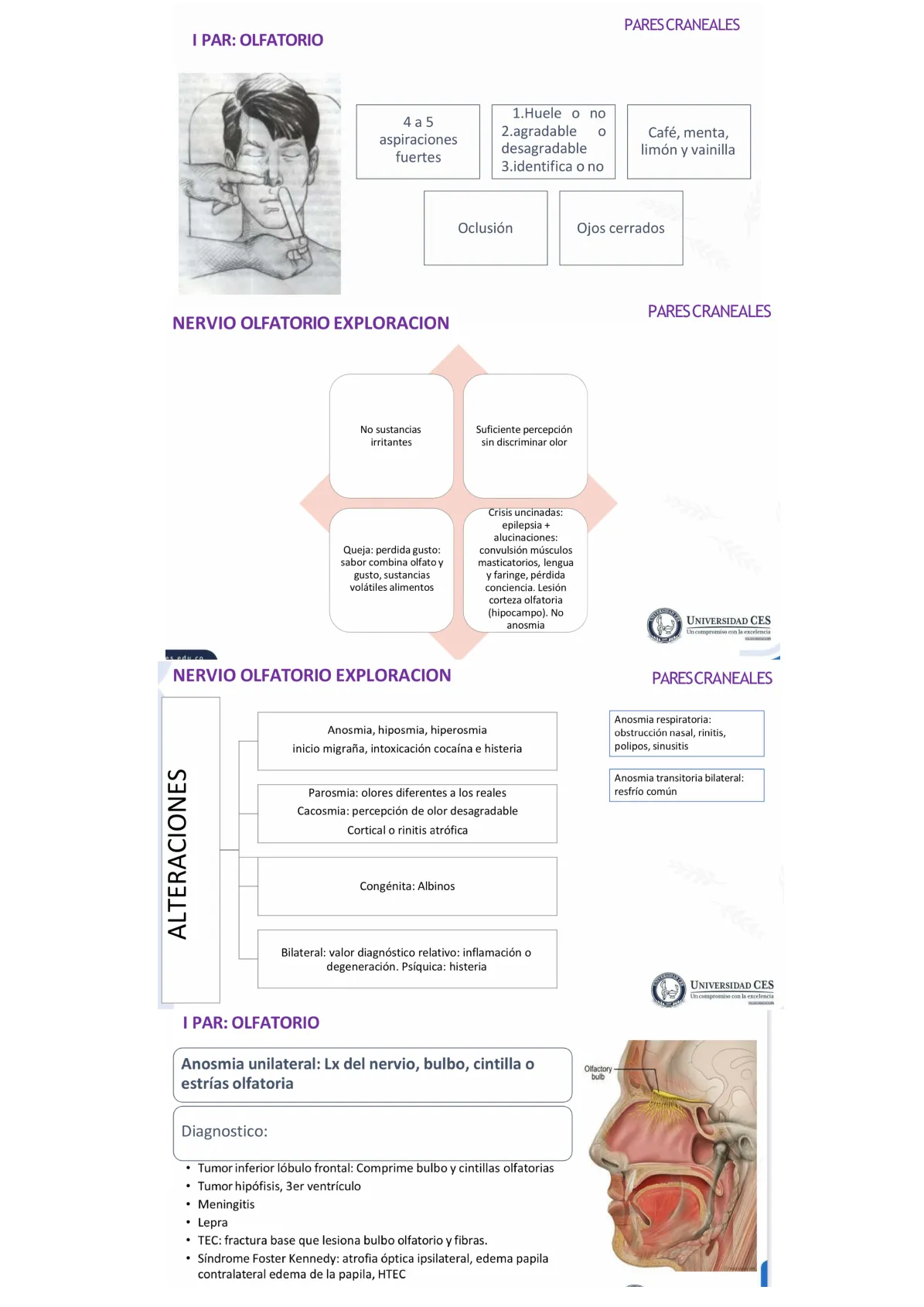PARES CRANEALES Anosmia, hiposmia, hiperosmia inicio migraña, intoxicación cocaína e histeria