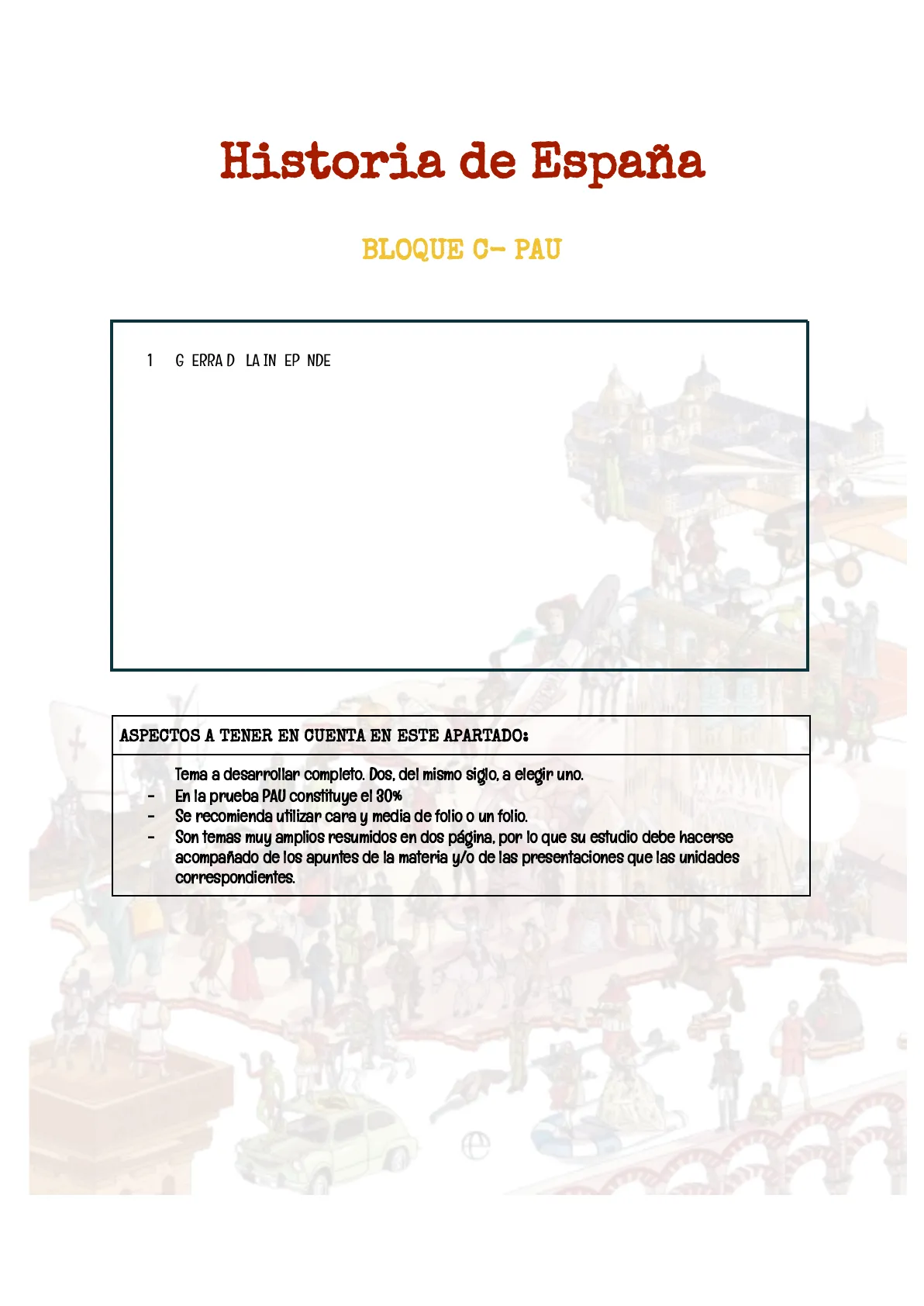 Documento de Universidad sobre Historia de España. El Pdf ofrece un resumen conciso de la historia española, incluyendo la Guerra de Independencia, la Segunda República y la Guerra Civil, útil para el estudio de Historia a nivel universitario.