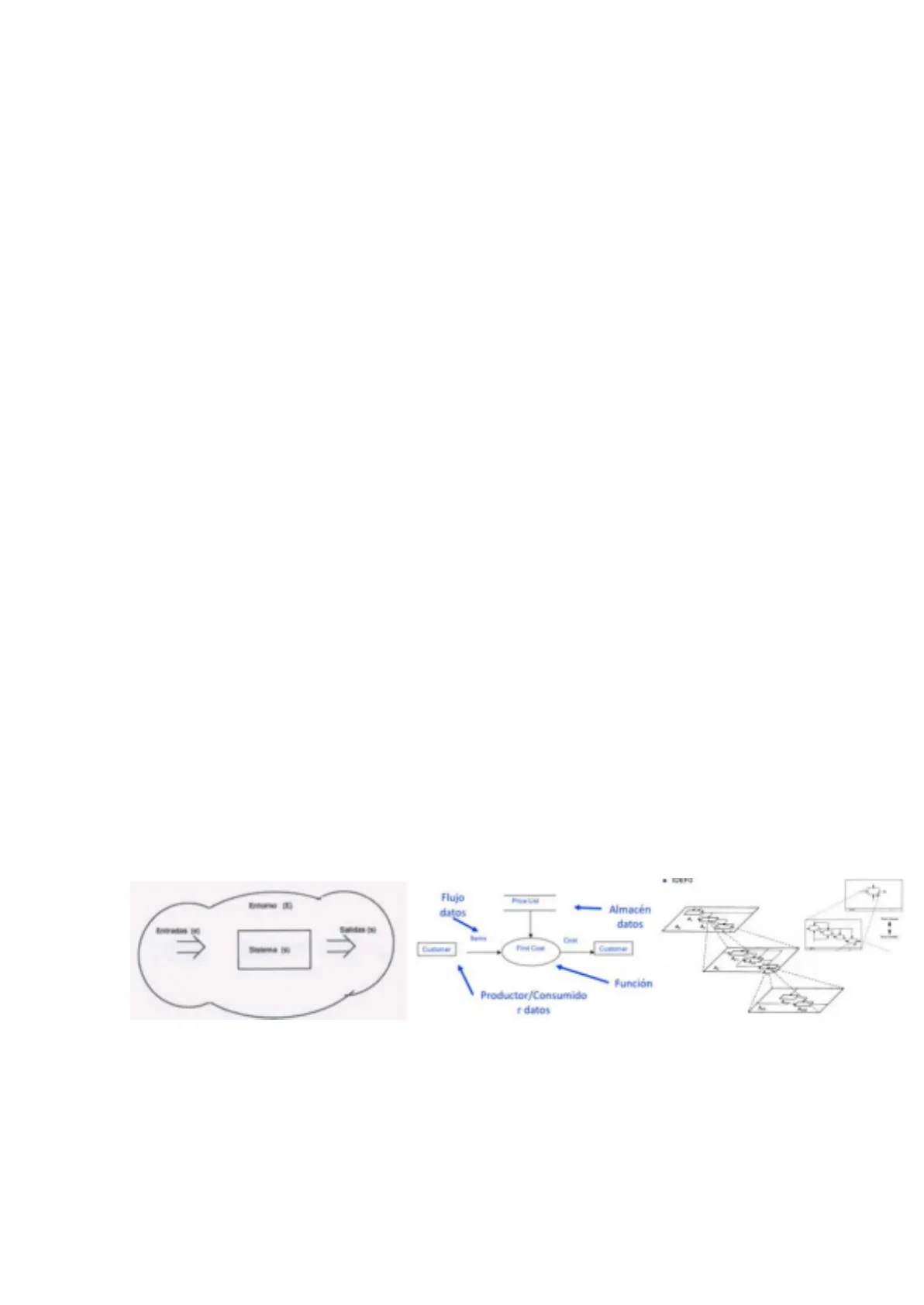Las metodologías y lenguajes SAAD son independientes, pero comparten que: · Se centran en la actividad · Comunican funcionalidad de los sistemas con actividades, control o datos. En el dominio de los IS (Sistemas de Información) se indica que este modelo se masa en la Función/Dato, lo que supone que las funciones dependen de la estructura de datos y que las personas no piensan en términos de estas estructuras: expresan la funcionalidad del sistema, no como se estructura. En el SAAD se usan lenguajes descriptivos para modelado funcional (Diagramas de Flujo de Datos (DFD), IDEF0 o Diagrama de Bloques de Flujo Funcional (FFBD)), para modelar estructuras de datos (Entidad-Relación, IDEF1X) y para modelar aspectos de comportamiento temporal (IDEF3). A continuación, se adjuntan imágenes de los diagramas E/S, DFD e IDEF0: Flujo datos Almacen datos I Find Cool Coroner Función Productor/Consumido r datos