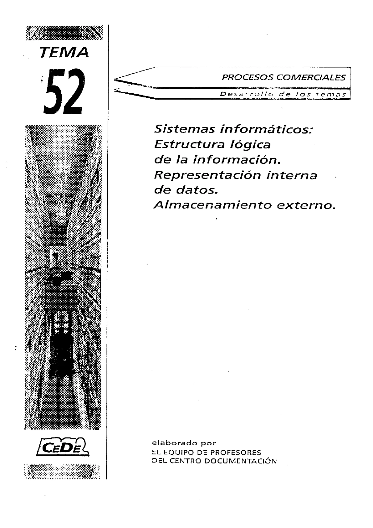 Documento de Cede sobre sistemas informáticos: estructura lógica de la información, representación interna de datos y almacenamiento externo. El Pdf, de nivel universitario y materia Informática, detalla sistemas de numeración y codificación alfanumérica como ASCII y EBCDIC.