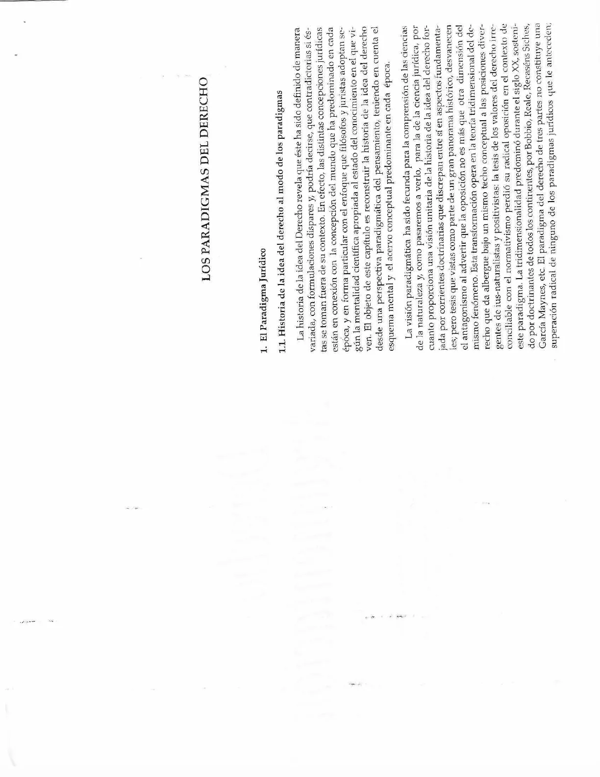 La visión paradigmática ha sido fecunda para la comprensión de las ciencias de la naturaleza y, como pasaremos a verlo, para la de la ciencia jurídica, por cuanto proporciona una visión unitaria de la historia de la idea del derecho for- jada por corrientes doctrinarias que discrepan entre sí en aspectos fundamenta- les; pero tesis que vistas como parte de un gran panorama histórico, desvanecen el antagonismo al advertir que la oposición no es más que otra dimensión del mismo fenómeno. Esta transformación opera en la teoría tridimensional del de- recho que da albergue bajo un mismo techo conceptual a las posiciones diver- gentes de ius-naturalistas y positivistas: la tesis de los valores del derecho irre- conciliable con el normativismo perdió su radical oposición en el contexto de este paradigma. La tridimensionalidad predominó durante el siglo XX, sosteni- do por doctrinantes de todos los continentes, por Bobbio, Reale, Recaséns Siches, García Maynes, etc. El paradigma del derecho de tres partes no constituye una superación radical de ninguno de los paradigmas jurídicos que le anteceden;2
