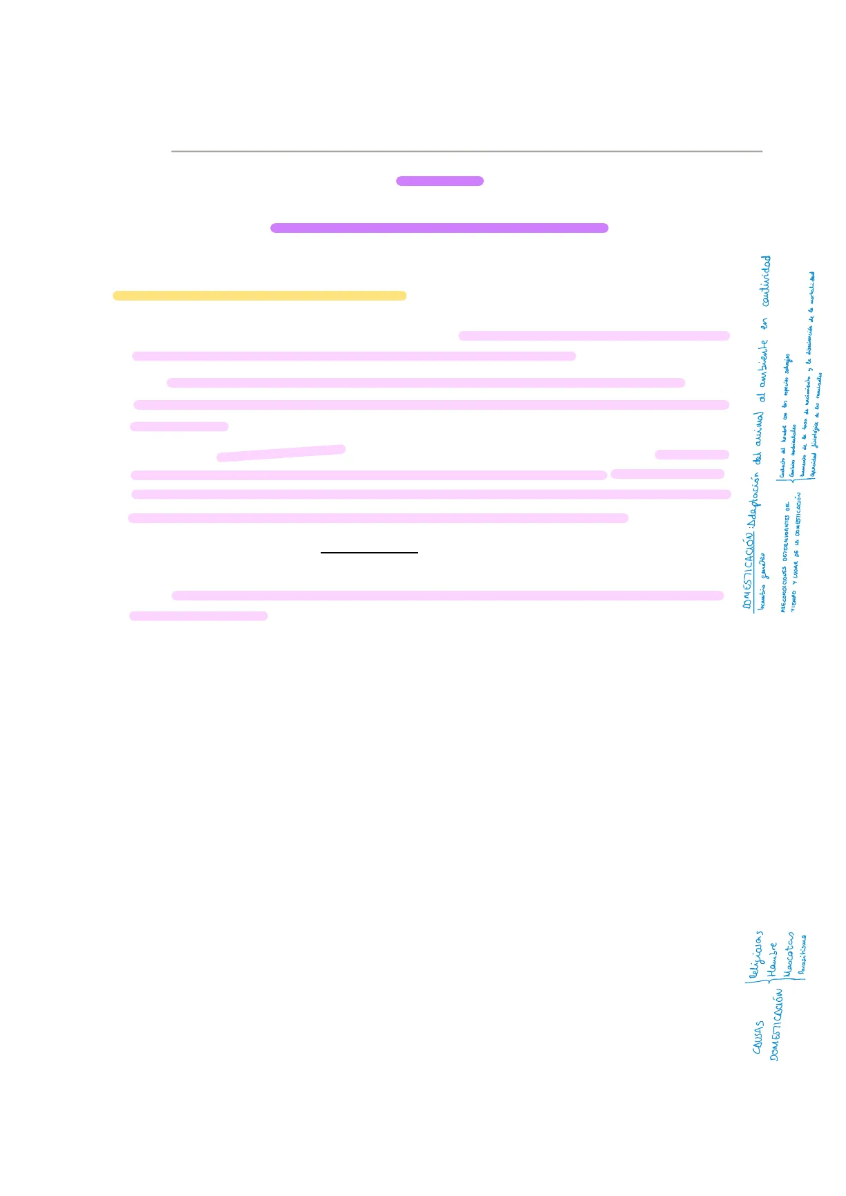 Documento de Universidad sobre La domesticación de las especies. El Pdf, un material de Biología para Universidad, explora el proceso de domesticación animal, detallando el inicio, la cronología y las especies principales como el perro y el gato, con cambios genéticos y de comportamiento.