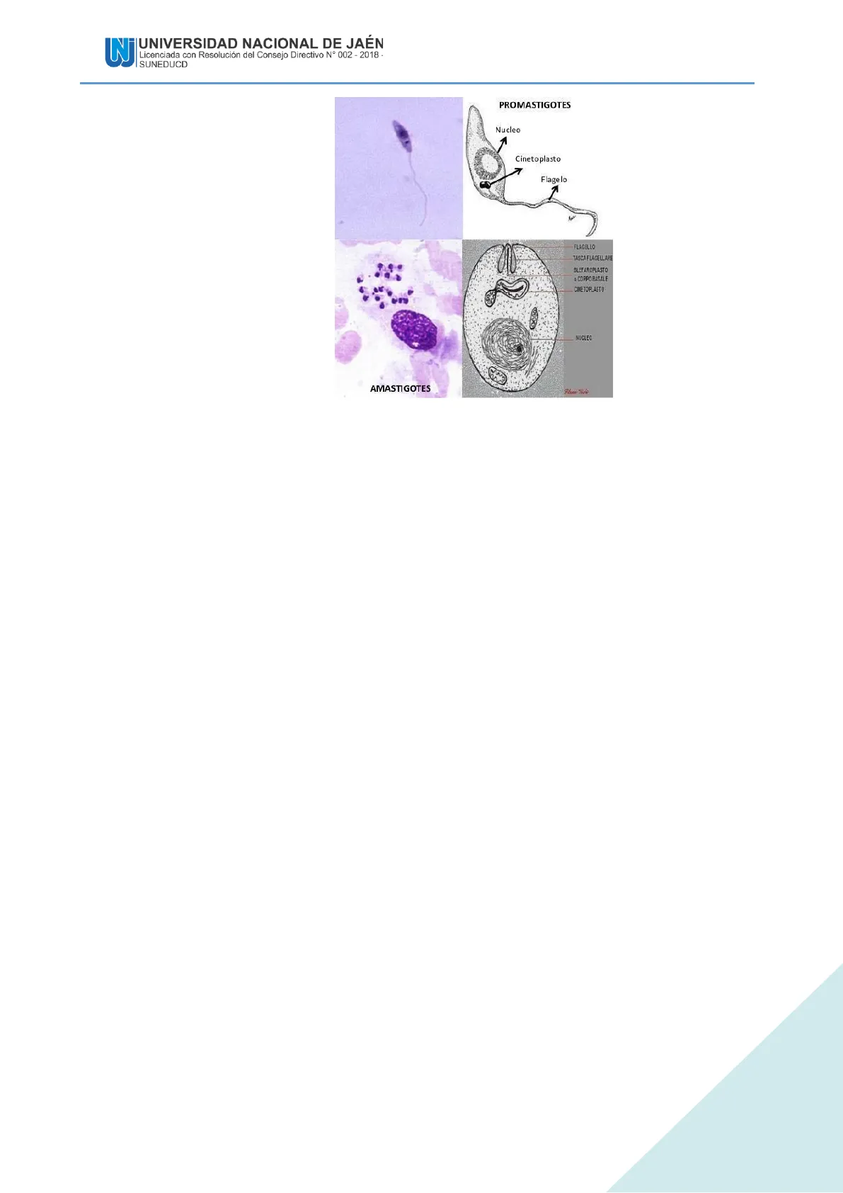 PROMASTIGOTES Nucleo Cinetoplasto Flagelo FLAGELLO TASCA FLAGELLARE BLEFAROPLASTO · CORPO BASALE CINETOPLASTO NUCLEO AMASTIGOTES Figura 1. Estadios de vida de Leishmania. Fuente: https://es.slideshare.net/nanitapd/tripanosomiais-leishmaniasis2015b