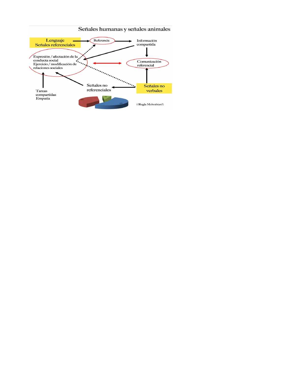 Señales humanas y señales animales Lenguaje Señales referenciales Referencia Información compartida 1 Expresión / afectación de la conducta social Ejercicio / modificación de relaciones sociales Comunicación referencial Señales no referenciales Tareas compartidas Empatía Señales no verbales 55% (¿Regla Mehrabian?) Conducta automática