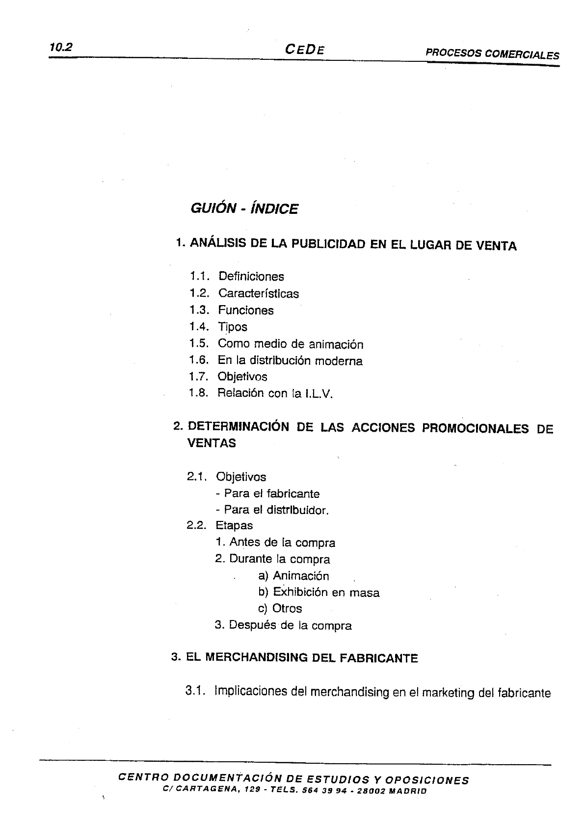 PEINADOR DE JUANA, J. Apuntes del Departamento de Merchandising. ESIC.