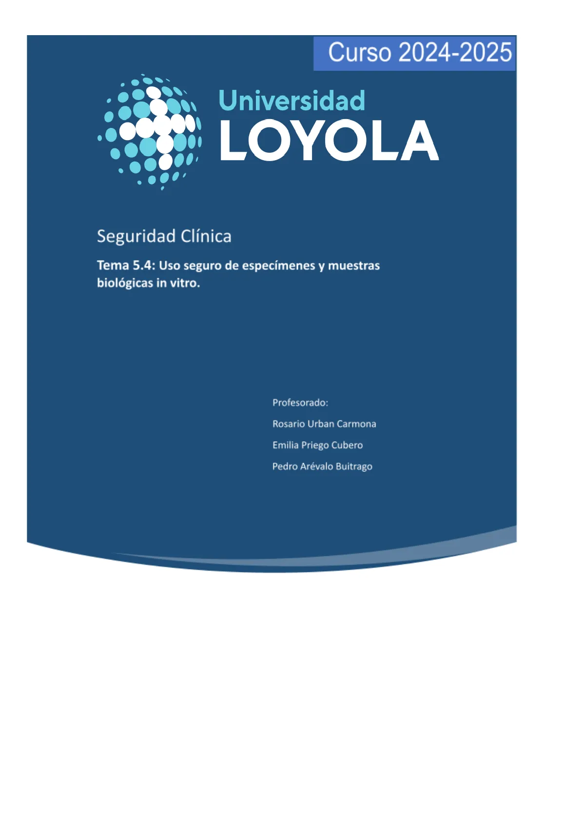 0Tema 5.4: Uso seguro de especímenes y muestras biológicas in vitro. Universidad LOYOLA