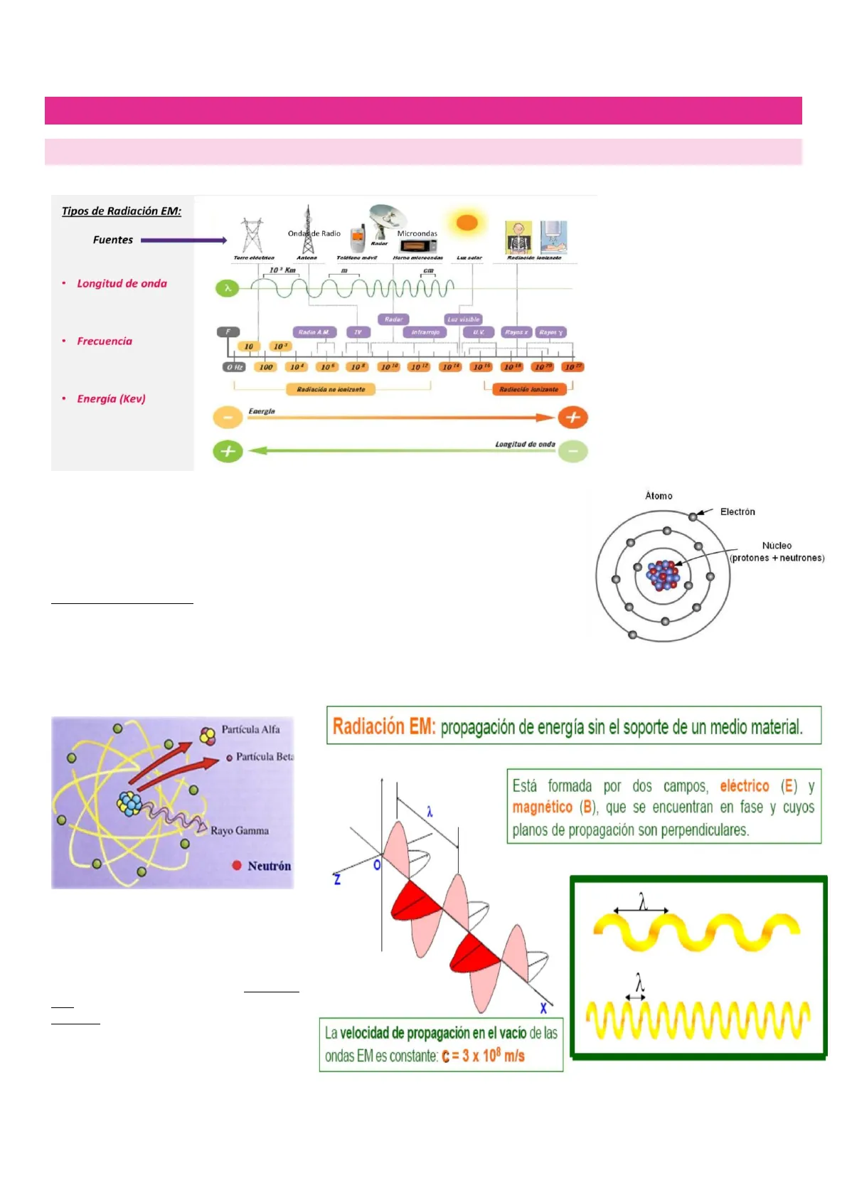 Radiación EM: propagación de energía sin el soporte de un medio material.