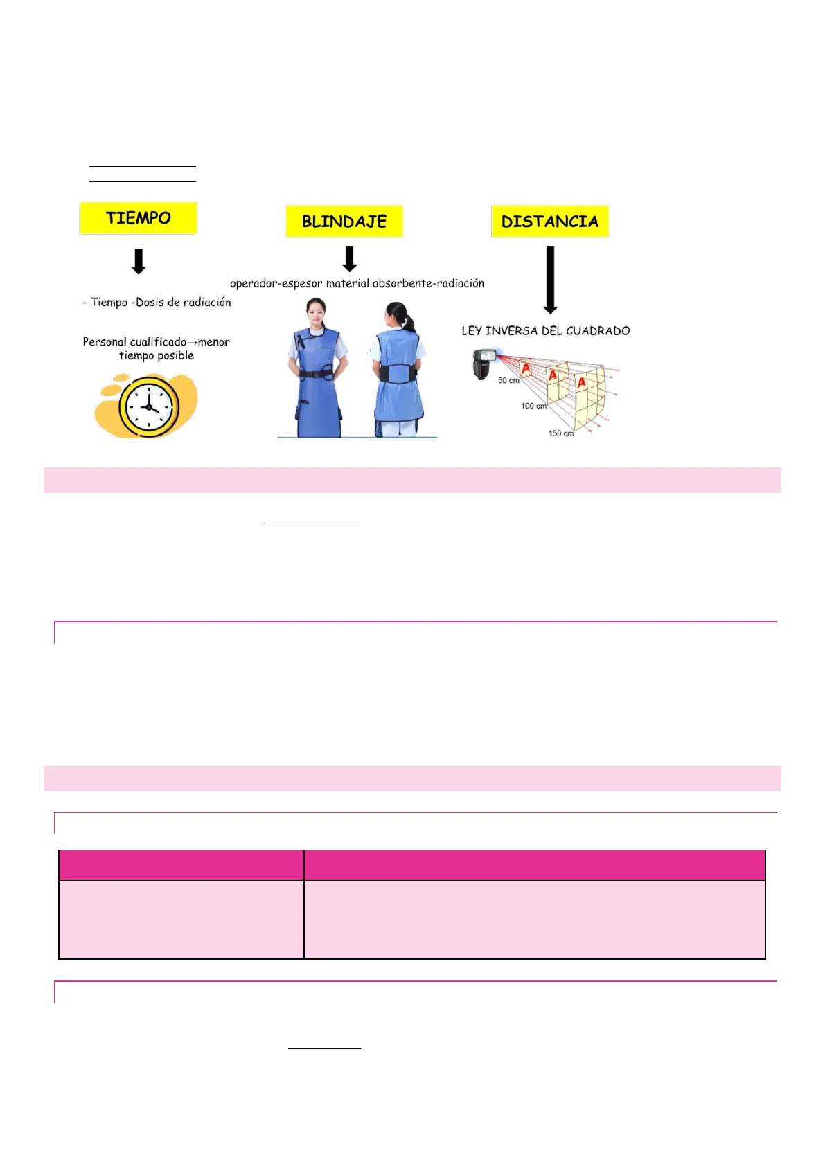 - Tiempo -Dosis de radiación