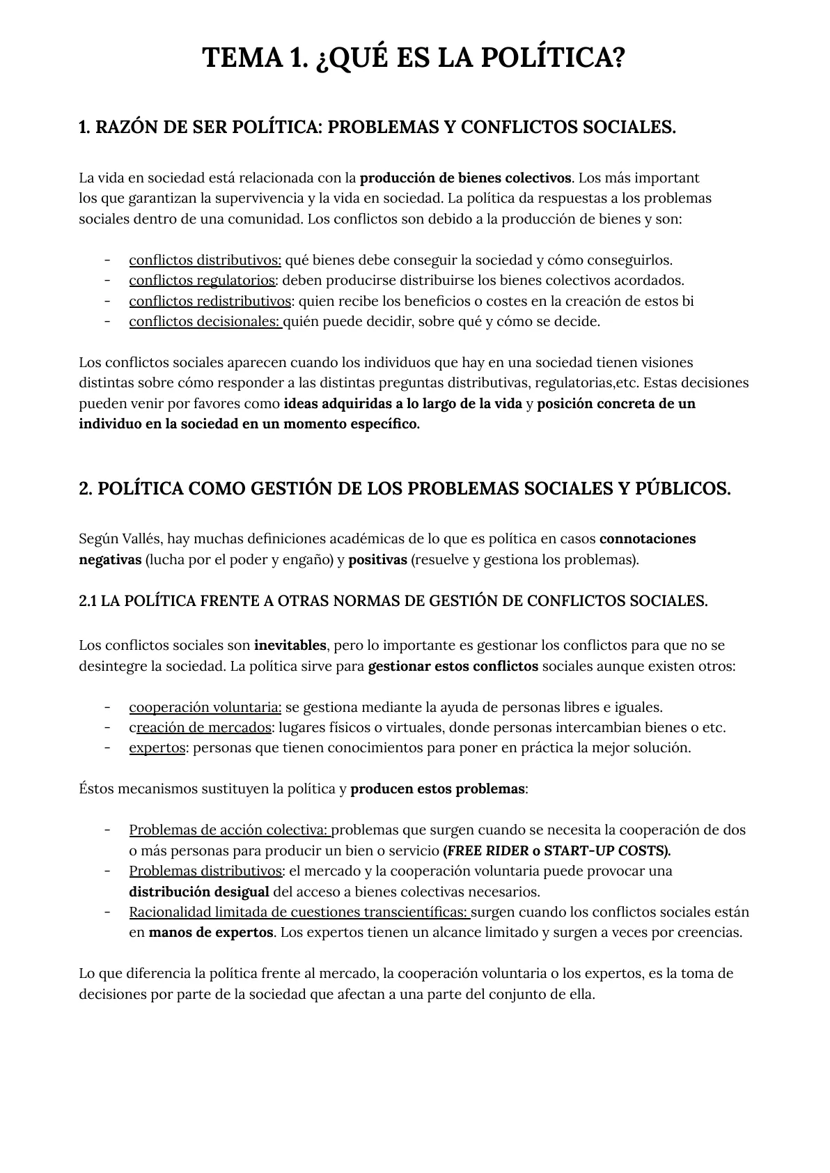 La vida en sociedad está relacionada con la producción de bienes colectivos. Los más importantes son los que garantizan la supervivencia y la vida en sociedad. La política da respuestas a los problemas sociales dentro de una comunidad. Los conflictos son debido a la producción de bienes y son: