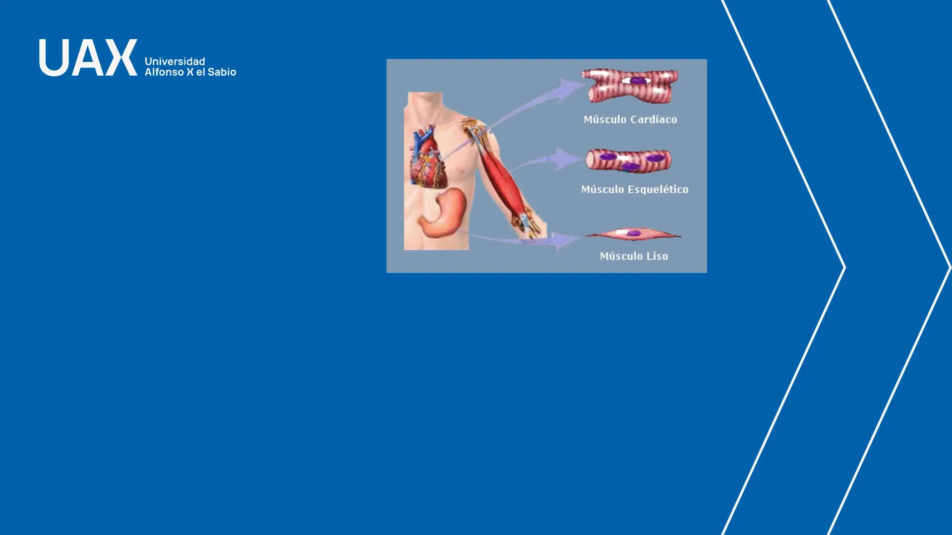 UAX · Formado por células alargadas, con muchos filamentos citoplasmáticos formados por proteínas contráctiles, que obtienen la energía para su contracción de las moléculas de ATP. · Hay tres tipos de tejido muscular: - Músculo estriado esquelético: de contracción voluntaria - Músculo estriado cardíaco: de contracción involuntaria. - Músculo liso: de contracción involuntaria. 41 uax.comUAX 4