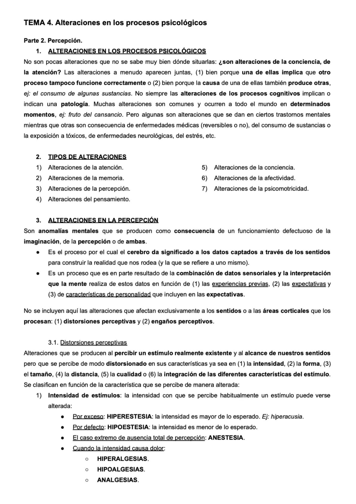 Documento de Universidad sobre Alteraciones en los Procesos Psicológicos. El Pdf aborda las anomalías de la percepción y las ideas delirantes, clasificando las alteraciones perceptivas y analizando las ideas delirantes primarias y secundarias en Psicología.