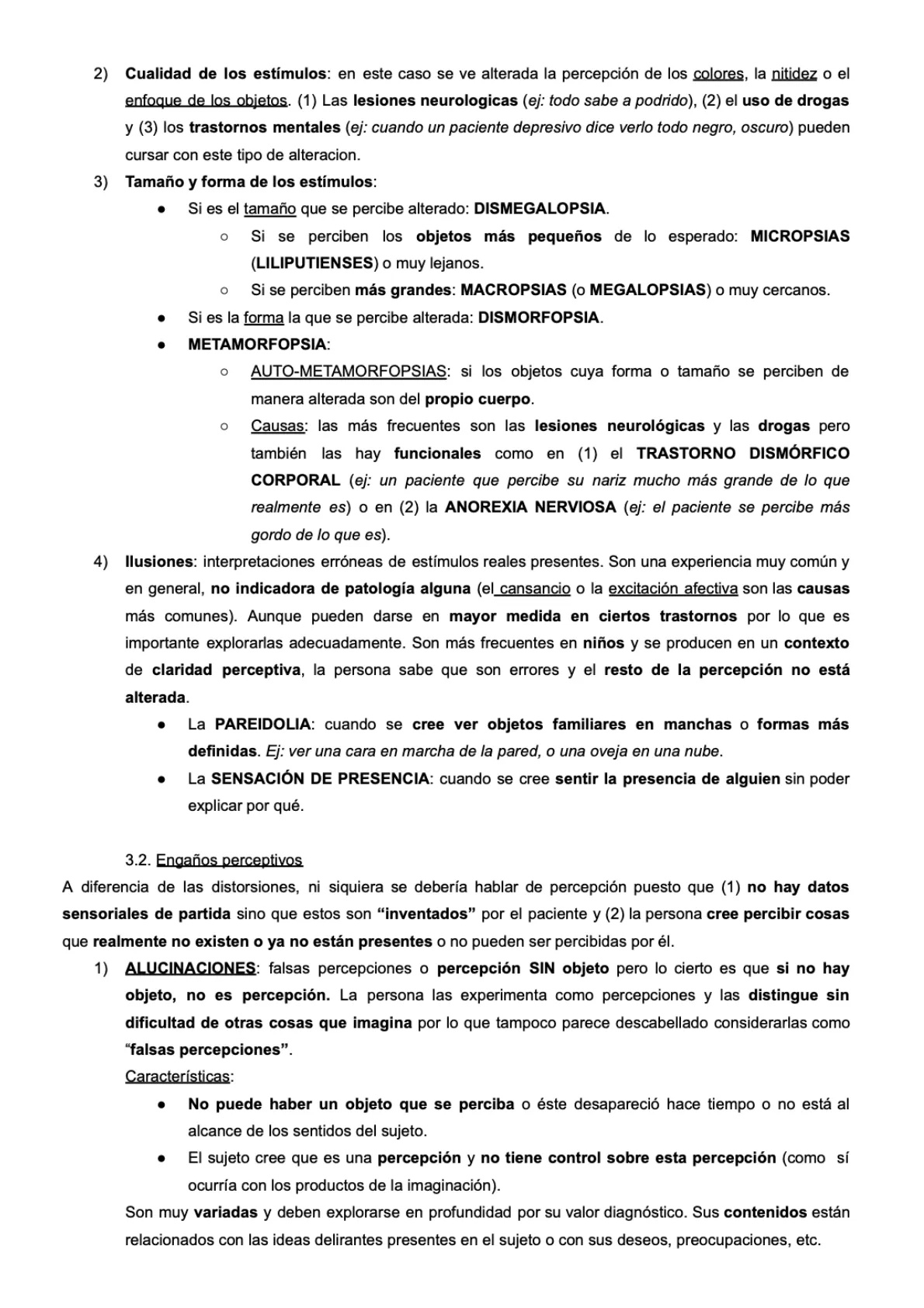 No se incluyen aqui las alteraciones que afectan exclusivamente a los sentidos o a las áreas corticales que los procesan: (1) distorsiones perceptivas y (2) engaños perceptivos.