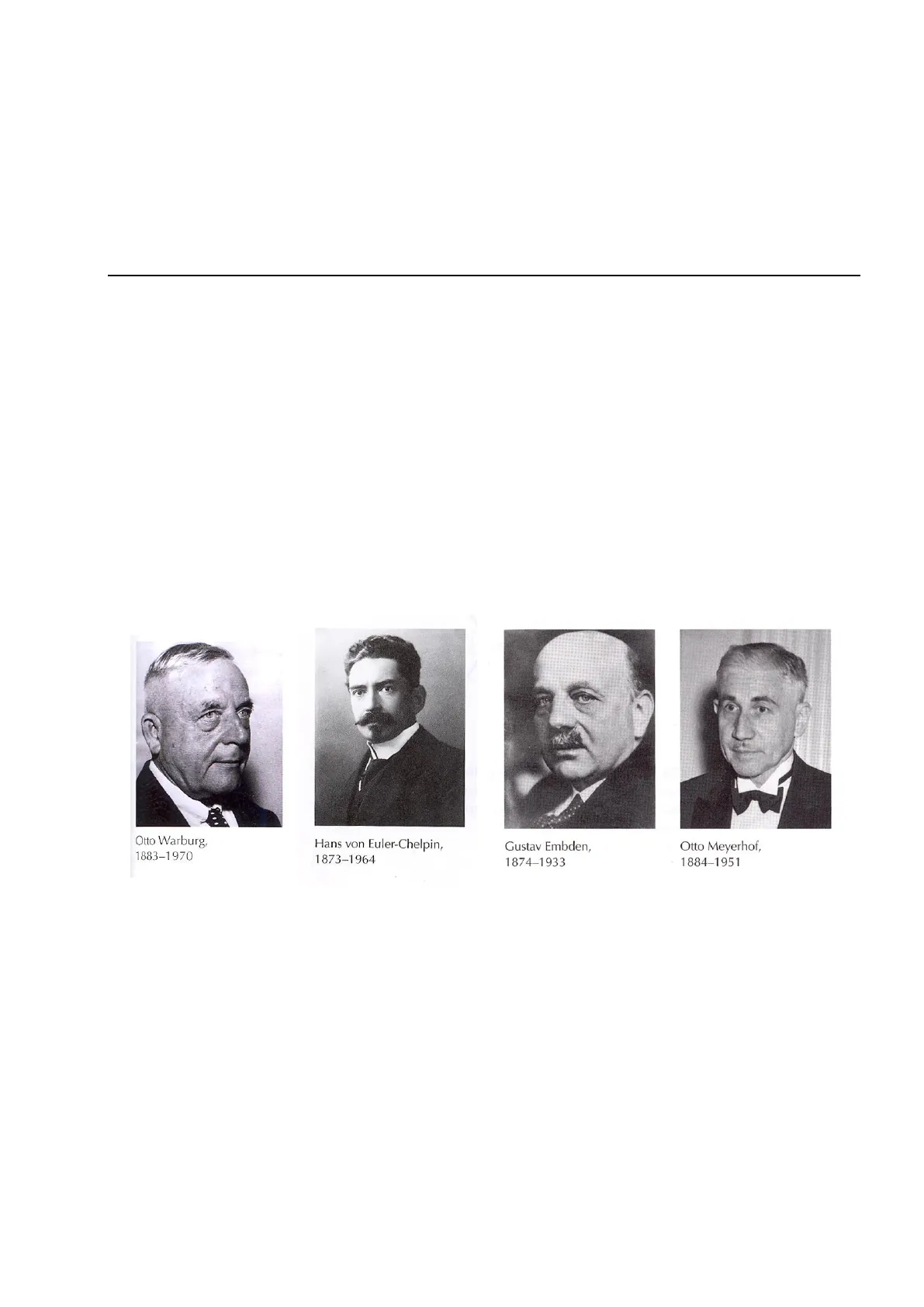 Otto Warburg, 1883-1970 Hans von Euler-Chelpin, 1873-1964 Gustav Embden, 1874-1933 Otto Meyerhof, 1884-1951