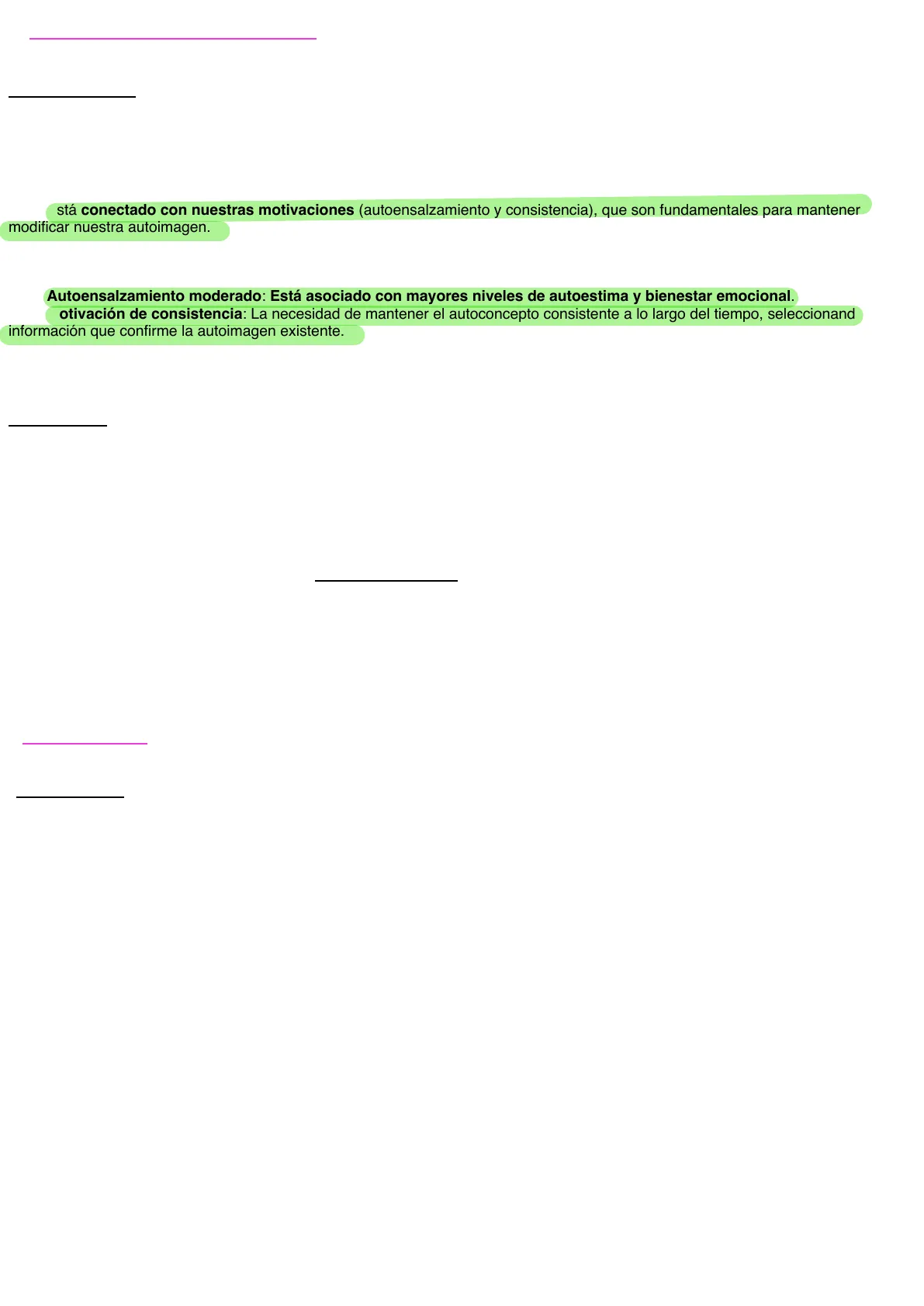· Definición: Es la valoración positiva o negativa que tenemos de nosotros mismos. Surge a partir de la interpretación del autoconcepto y de como nos vemos en relación con los demás. · Clasificaciones: · Autoestima auténtica vs. contingente: · Auténtica: Se basa en el autoconocimiento y los valores personales. · Contingente: Depende de la validación externa y el reconocimiento de los demás. · Autoestima genuina vs. defensiva: · Genuina: Acepta tanto las capacidades como las limitaciones personales sin necesidad de exagerar las cualidades. · Defensiva: Tiende a exagerar las cualidades para evitar el malestar emocional.
