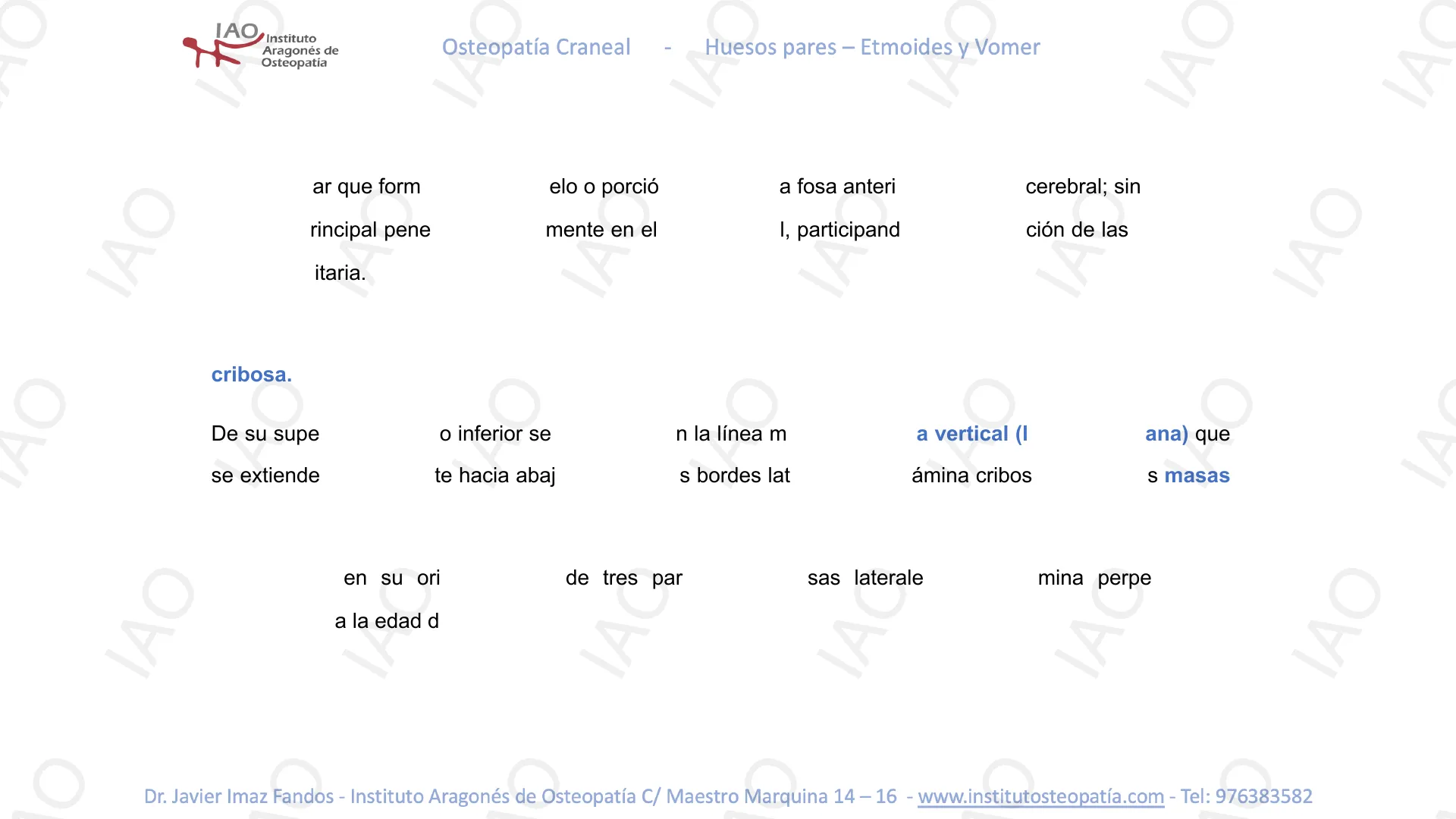 IAO IAO IAO IAO IAO IAO IAO IAOIAO Instituto Aragonés de Osteopatia Osteopatía Craneal Huesos pares - Etmoides y Vomer