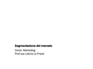 Slide di Università sulla segmentazione del mercato. Il Pdf esplora il concetto di segmentazione del mercato, analizzando i diversi approcci e criteri utilizzati, con un focus sui mercati B2B. Questo materiale di Economia include esempi pratici e tabelle riassuntive per facilitare la comprensione.