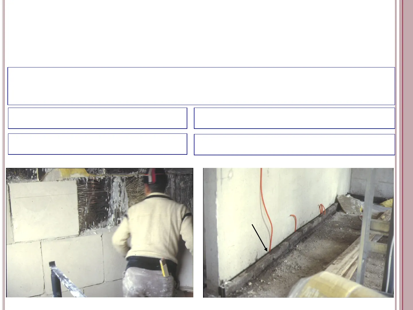 Le contropareti in elementi forati di laterizio possono essere rese solidali alla struttura in c.a. con ancoraggi metallici o con uno strato di malta. Nei climi piovosi è utile uno strato di intonaco rustico sulla faccia del tavolato esterno rivolta verso l'intercapedine. Contro parete in elementi forati per setti in c.a.
