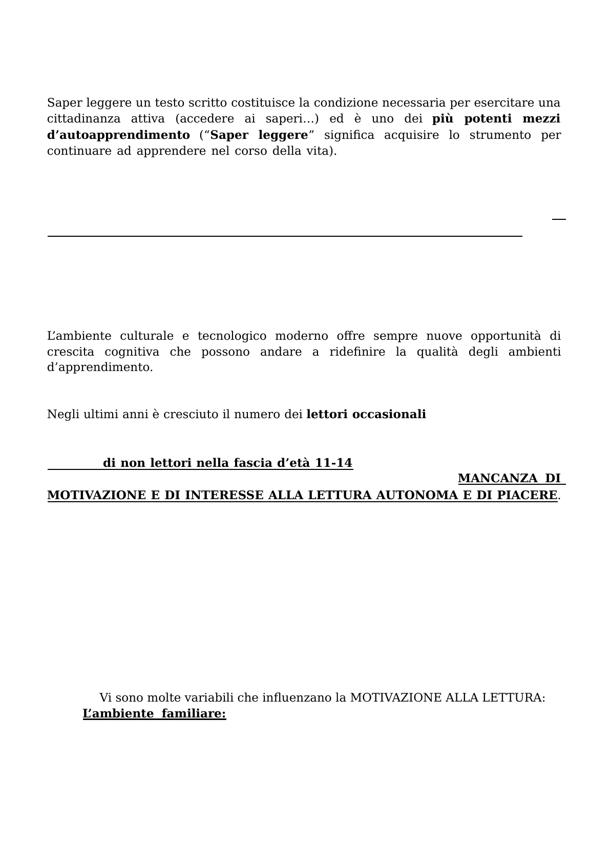 lettura. Vi sono molte variabili che influenzano la MOTIVAZIONE ALLA LETTURA: