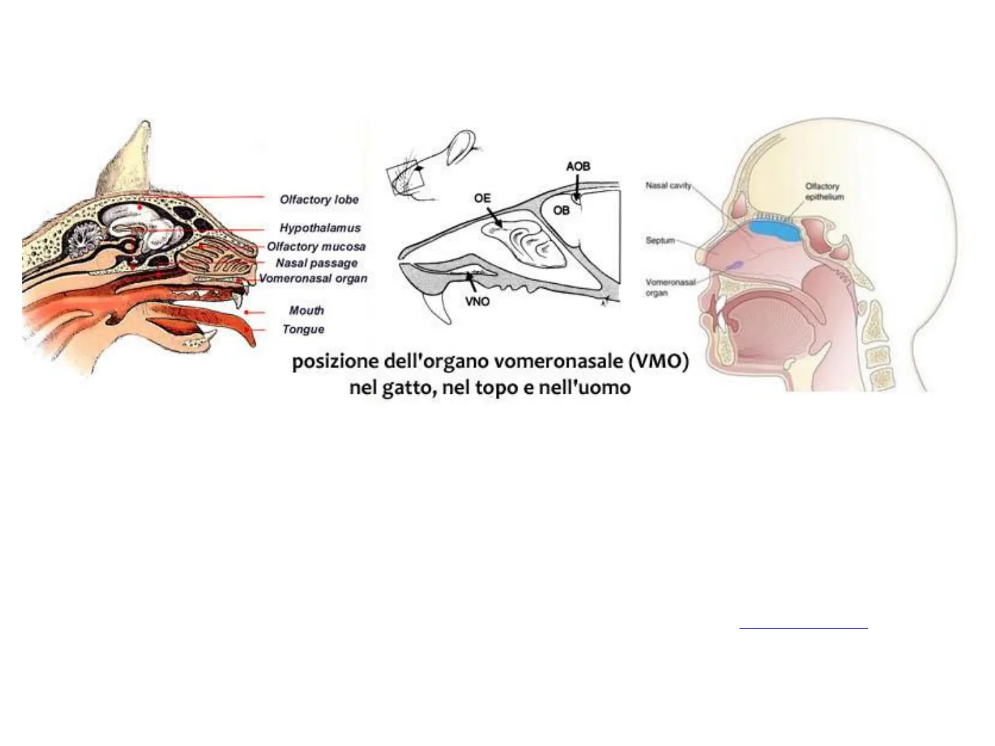 posizione dell'organo vomeronasale (VMO) nel gatto, nel topo e nell'uomo