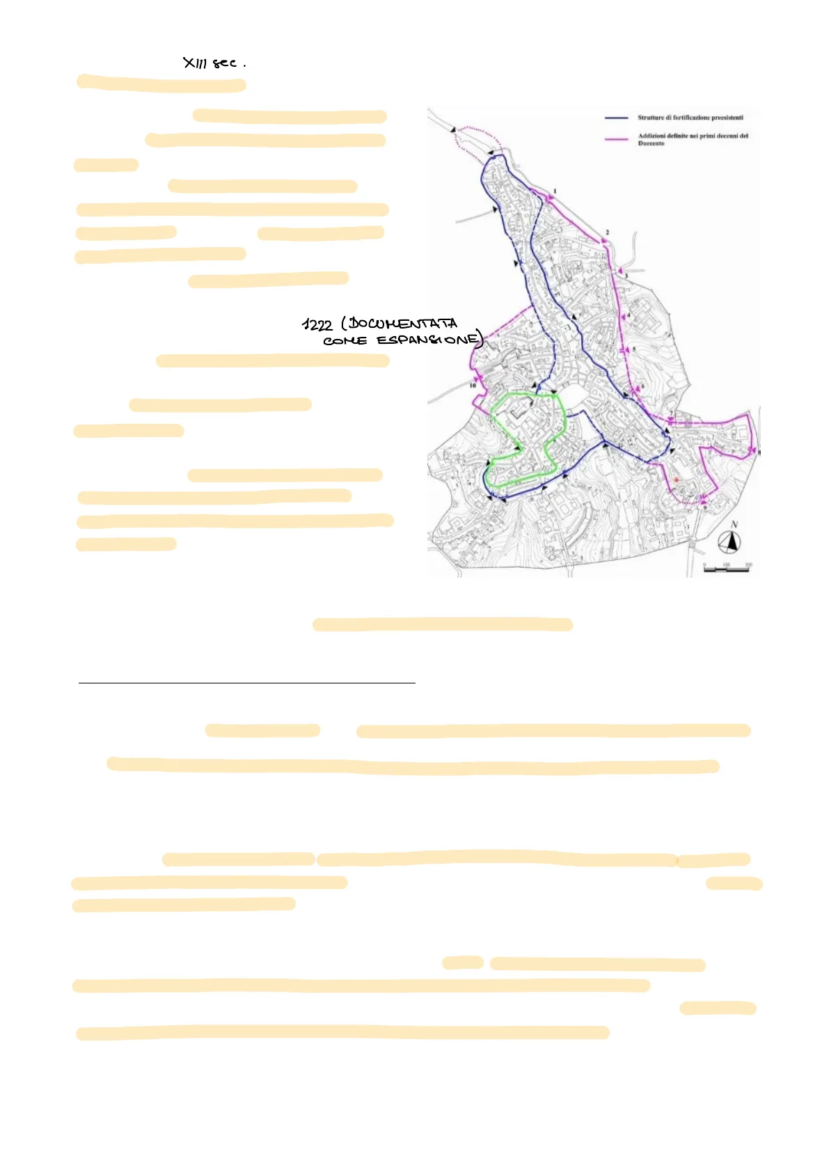 Questo si traduce in una serie di progressive addizioni al nucleo originario. 1222 (DOCUMENTATA - Strutture di fortificazione preesistenti Addizioni definite nei primi decenni del Duecento 2 COME ESPANSIONE)