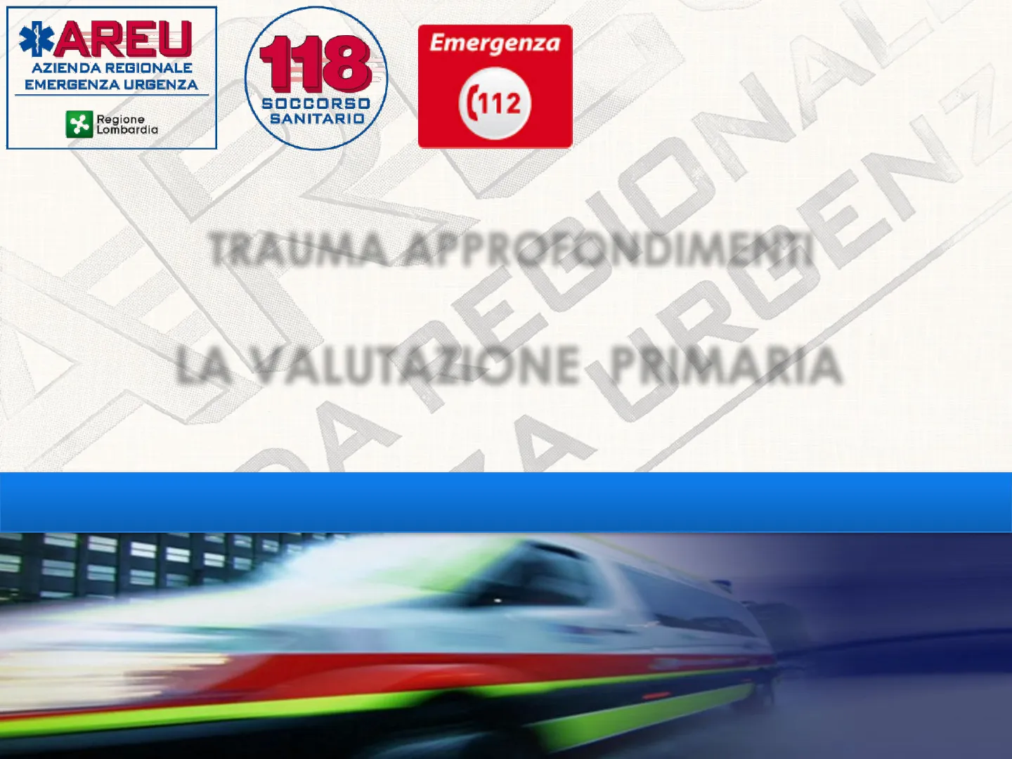 Slide da Areu su Trauma Approfondimenti la Valutazione Primaria. Il Pdf, utile per la formazione professionale, descrive la valutazione primaria del paziente traumatizzato in ambiente extraospedaliero, definendo gli obiettivi e introducendo lo schema ABCDE.
