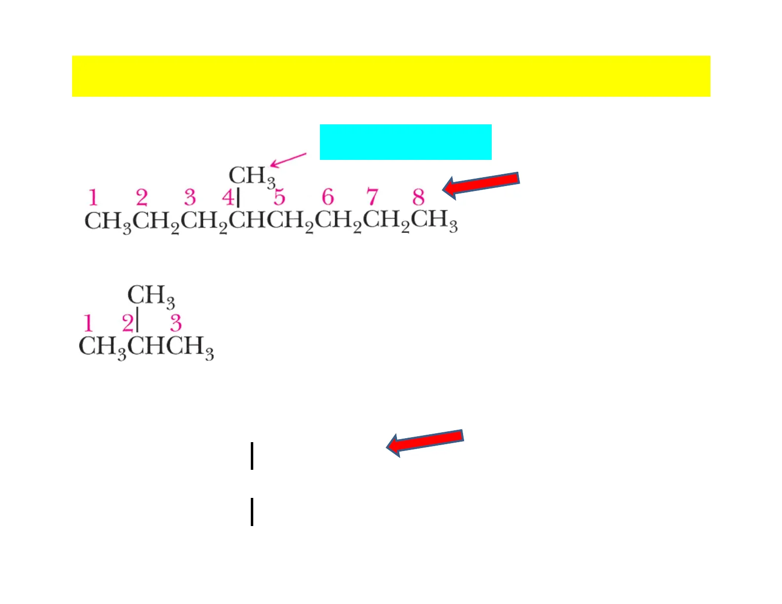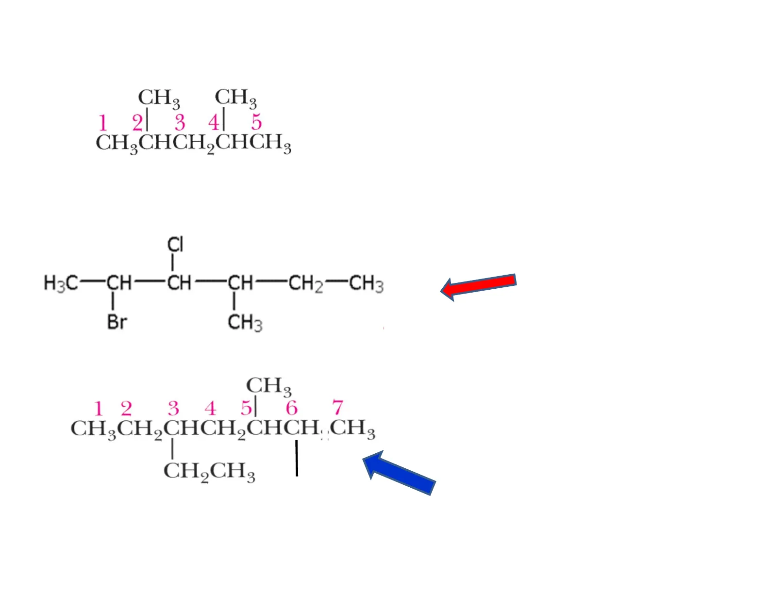 CI Br 8 7 65 CH,CHCHC CCH,CH,CHa 4 3 2 1 1 2 3 4 5 6 7 8 3-bromo-2-cloro-4-ottino CH3 3 1 2 CH-CHC 3 4 5 6 CCH,CH,Br 6 5 4 32 1 1-bromo-5-metil-3-esino