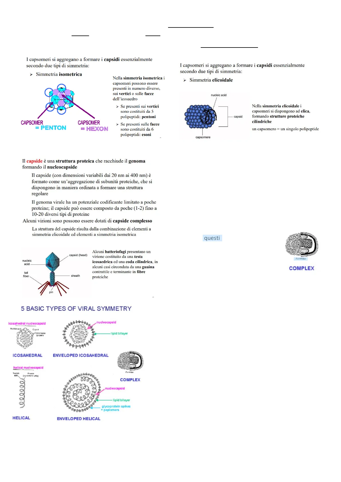 helical nucleocapsid Prowin icosahedral nucleocapsid Nuckie HET ICOSAHEDRAL HELICALI capsomeri nel capside icosaedrico sono costituiti da 5 o 6 polipeptidi, a seconda che questi capsomeri siano rispettivamente sul vertice dell'icosaedro o sulla faccia. Invece, nei capsidi a simmetria elicoidale, il capsomero è costituito da un singolo polipeptide. I capsomeri si aggregano a formare i capsidi essenzialmente secondo due tipi di simmetria: