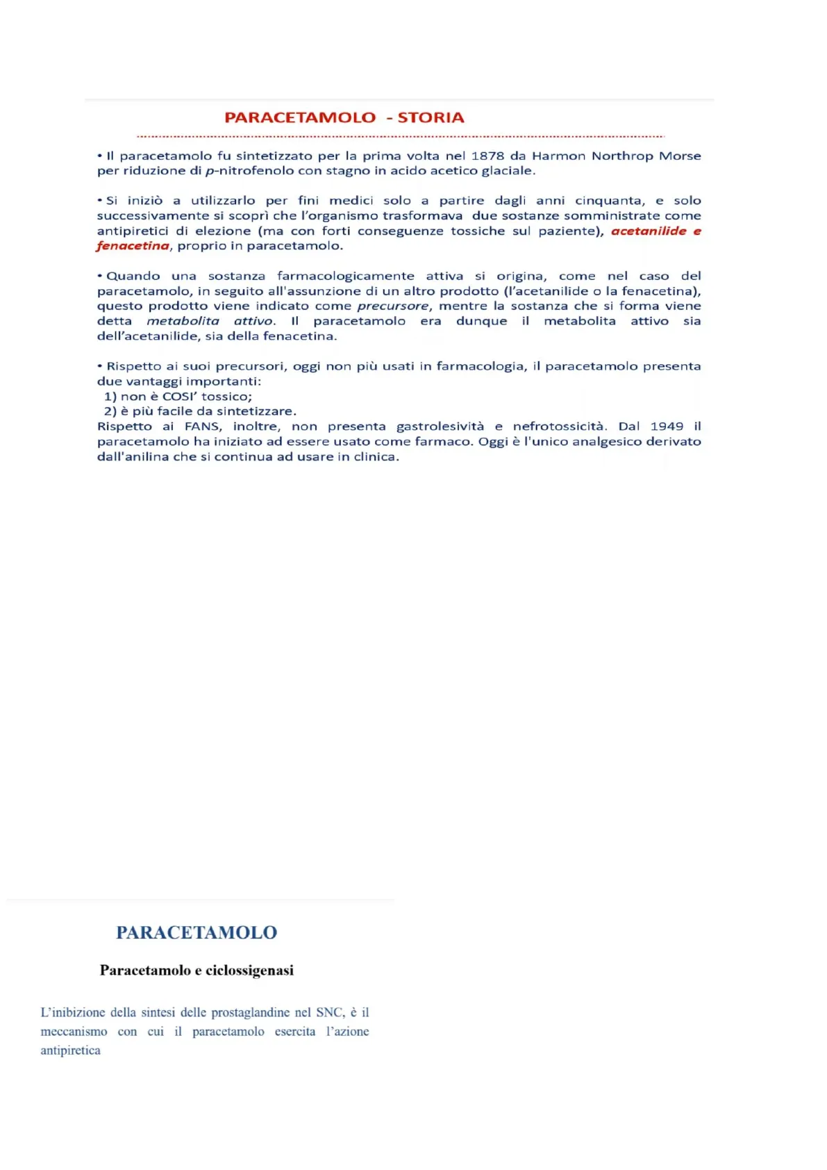 il paracetamolo che altro non era poi che il metabolita attivo che determinava così le sue