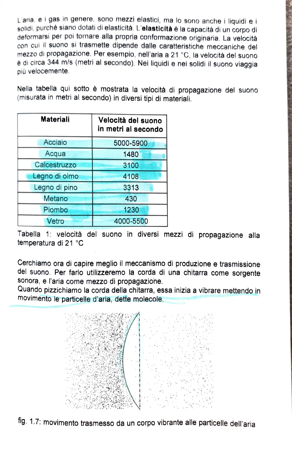 Nella tabella qui sotto è mostrata la velocità di propagazione del suono (misurata in metri al secondo) in diversi tipi di materiali.