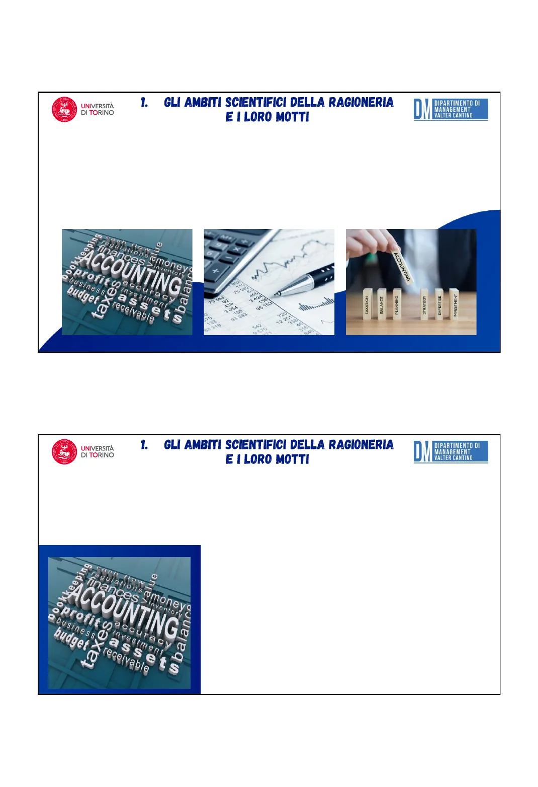 DIPARTIMENTO DI MANAGEMENT VALTER CANTINO 1404 LA RAGIONERIA Osserva Rileva Misura per produrre conoscenza di informazioni da utilizzarsi per prendere le necessarie decisioni in modo consapevole e razionale 10 @ prof. C. Rainero e prof.ssa Vania Tradori 5 906/03/2025 STUDI UNIVERSITAS TAURINENSE UNIVERSITÀ DI TORINO 1404