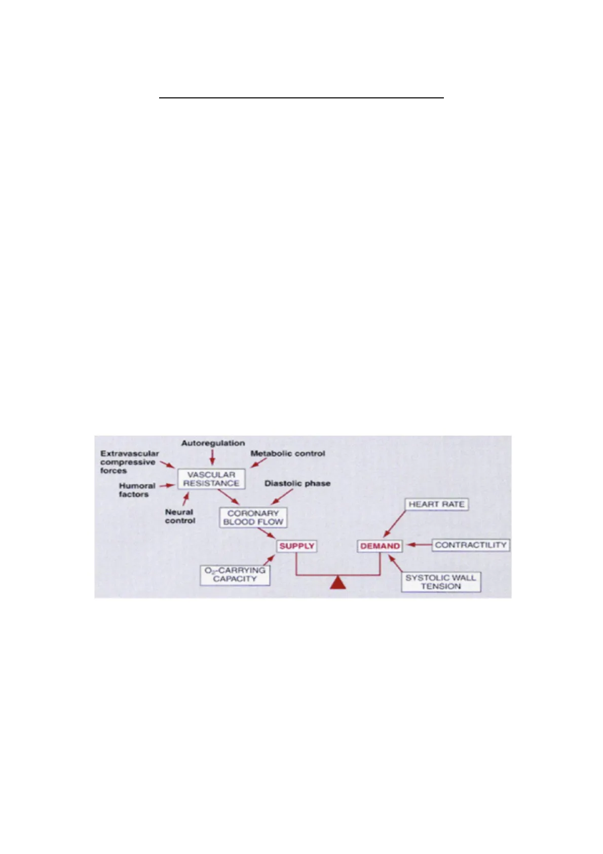 Autoregulation 1 Metabolic control Extravascular compressive forces VASCULAR RESISTANCE Diastolic phase Humoral -+ factors HEART RATE Neural control CORONARY BLOOD FLOW SUPPLY DEMAND CONTRACTILITY O -CARRYING CAPACITY SYSTOLIC WALL TENSION Figura 1.