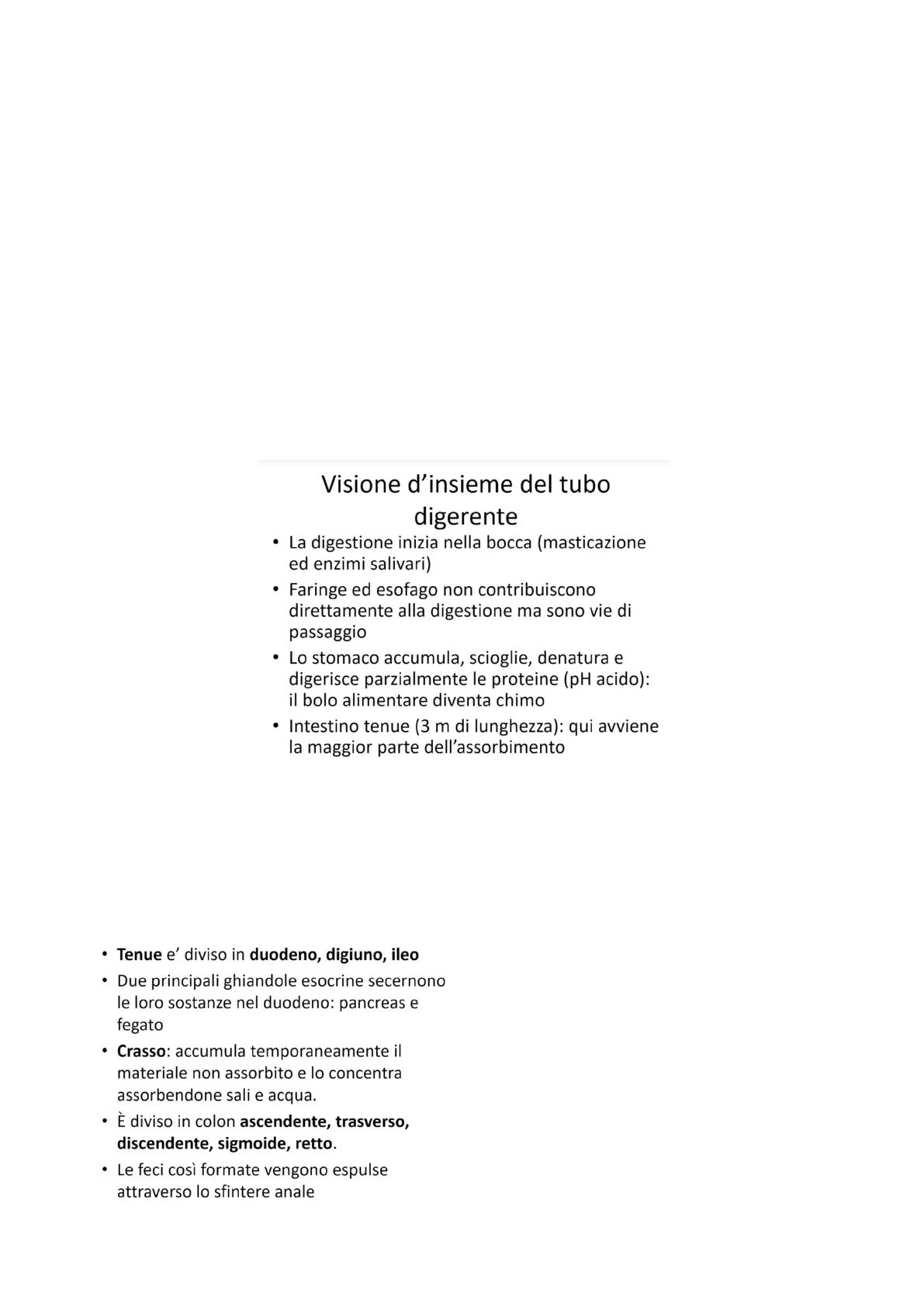 Visione d'insieme del tubo digerente
