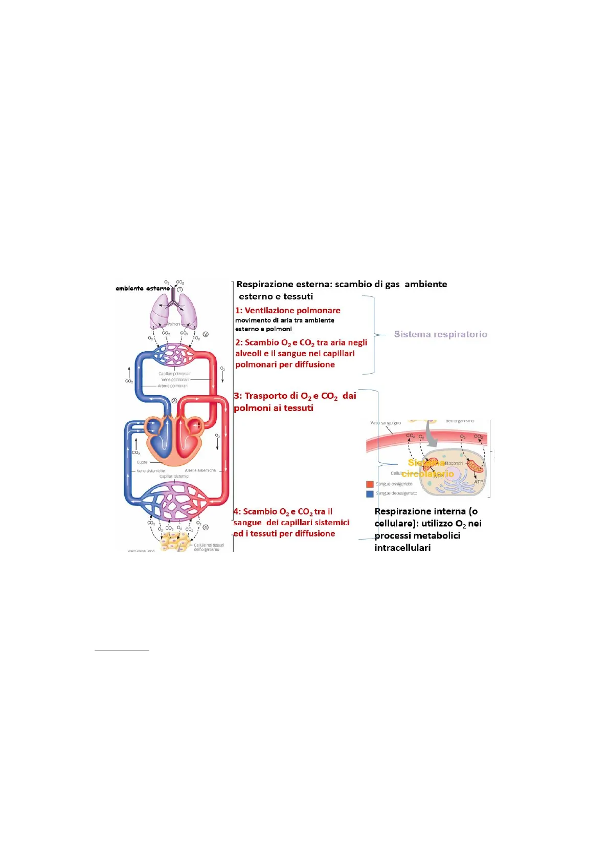 Le prime due fasi sono a carico del sistema respiratorio, mentre le altre due fasi sono a carico del sistema circolatorio. Sistema tocondri cellucircolatorio O2L'ossigeno, che grazie ai polmoni è stato riversato nei capillari polmonari, tornerà poi arricchito al cuore (una pompa) e attraverso il ventricolo sinistro potrà essere poi arricchito, e successivamente mandato in tutti i tessuti del nostro corpo. Ciò è a carico del nostro sistema circolatorio.