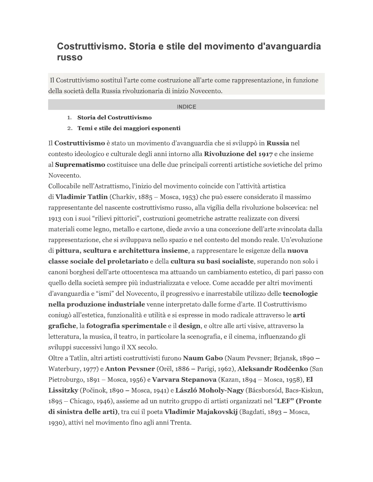 Documento da Università sul Costruttivismo: storia e stile del movimento d'avanguardia russo. Il Pdf, un utile strumento per lo studio dell'Arte, esplora la genesi e i principi artistici del Costruttivismo russo, analizzando figure chiave come Tatlin e Lissitzky e l'evoluzione del movimento attraverso pittura, scultura e architettura.