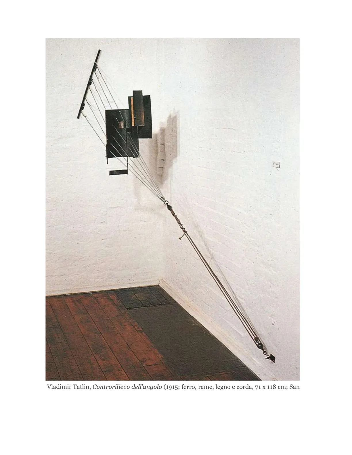 Oltre a Tatlin, altri artisti costruttivisti furono Naum Gabo (Naum Pevsner; Brjansk, 1890 - Waterbury, 1977) e Anton Pevsner (Orël, 1886 - Parigi, 1962), Aleksandr Rodčenko (San Pietroburgo, 1891 - Mosca, 1956) e Varvara Stepanova (Kazan, 1894 - Mosca, 1958), El Lissitzky (Počinok, 1890 - Mosca, 1941) e László Moholy-Nagy (Bácsborsód, Bacs-Kiskun, 1895 - Chicago, 1946), assieme ad un nutrito gruppo di artisti organizzati nel "LEF" (Fronte di sinistra delle arti), tra cui il poeta Vladimir Majakovskij (Bagdati, 1893 - Mosca, 1930), attivi nel movimento fino agli anni Trenta.Vladimir Tatlin, Controrilievo dell'angolo (1915; ferro, rame, legno e corda, 71 x 118 cm; SanPietroburgo, Museo Russo)ДА ЗДРАВСТВУЕТ //1" ИНТЕРНАЦИОНА. крытие м К ОБРАЗ ЭЛИС И. СТ ческ Vladimir Tatlin con un modello per il Monumento alla Terza Internazionale