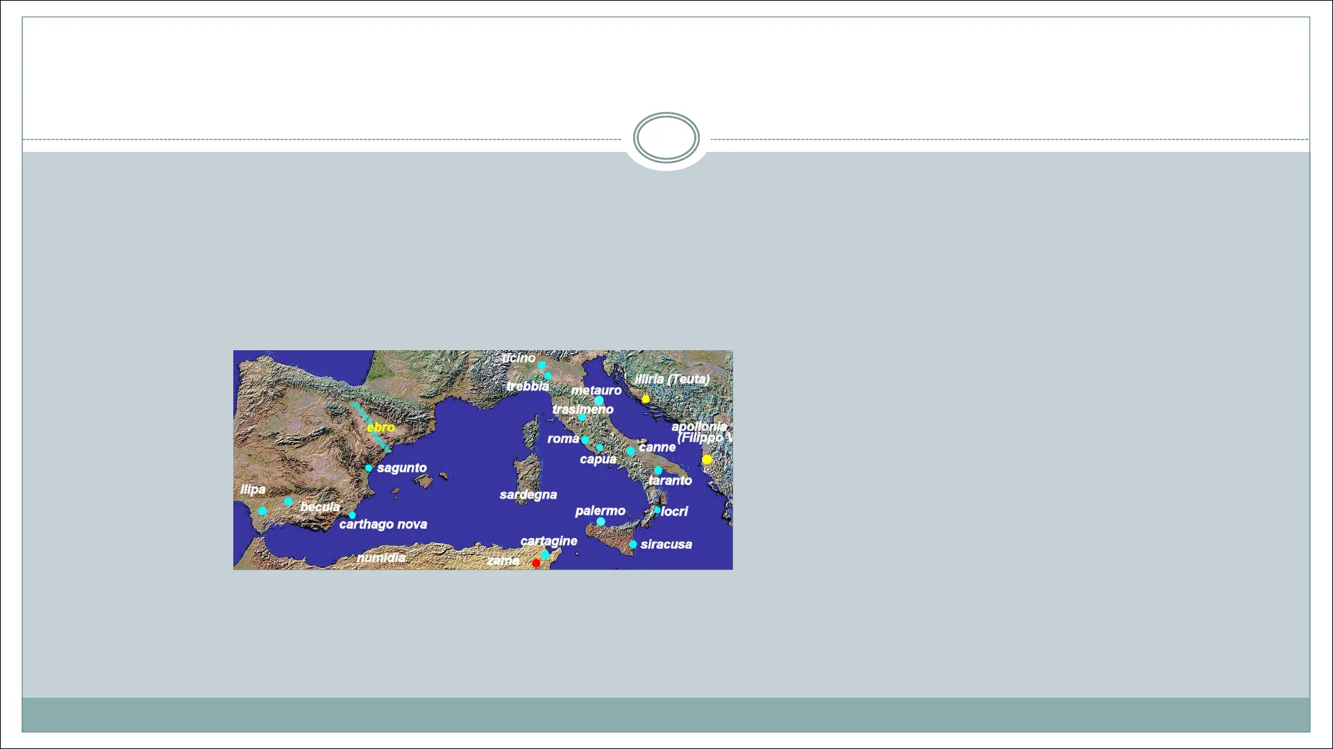 Espansione cartaginese in Spagna (ruolo di Amilcare Barca e poi di Asdrubale); 226: trattato dell'Ebro tra Roma e Cartagine: cino illiria (Teuta) trebbia metauro trasimeno apollon (Filip romá canne capua sagunto taranto ilipaDosy sardegna becula palermo .* locri carthago nova cartagine siracusa numidia zama