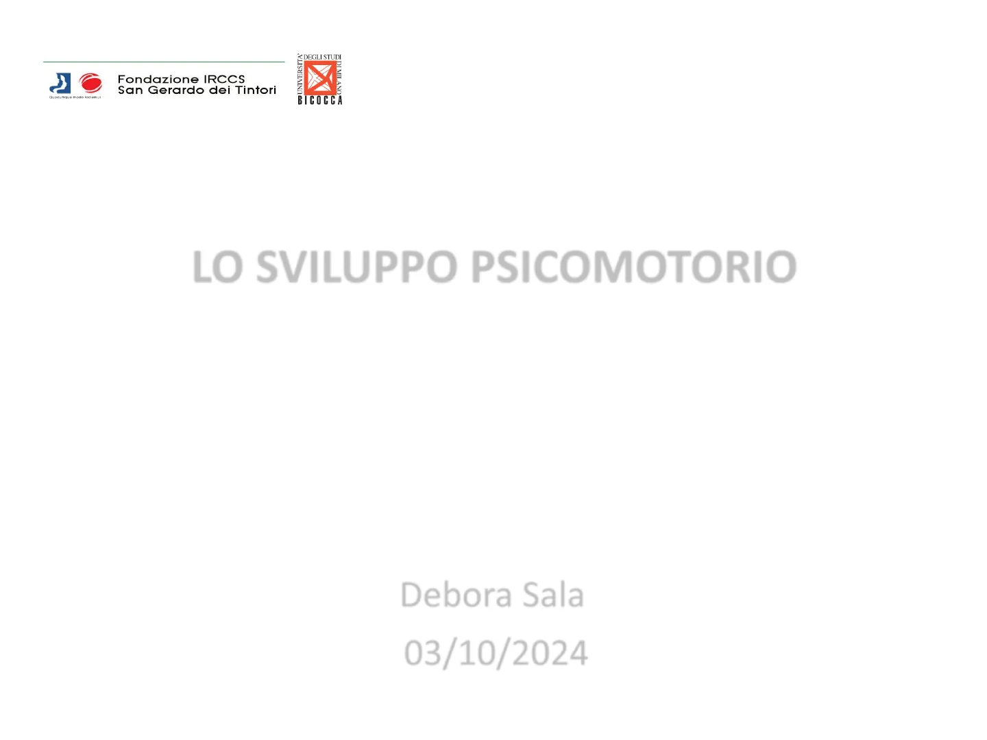 Fondazione IRCCS San Gerardo dei Tintori UNIVERSITA' DI MILANO Quecumque modo faciemus DEGLI STUDI BICOCCA LO SVILUPPO PSICOMOTORIO Insegnamento: Metodologia Clinica Infermieristica I Modulo: Pediatria Debora Sala 03/10/2024