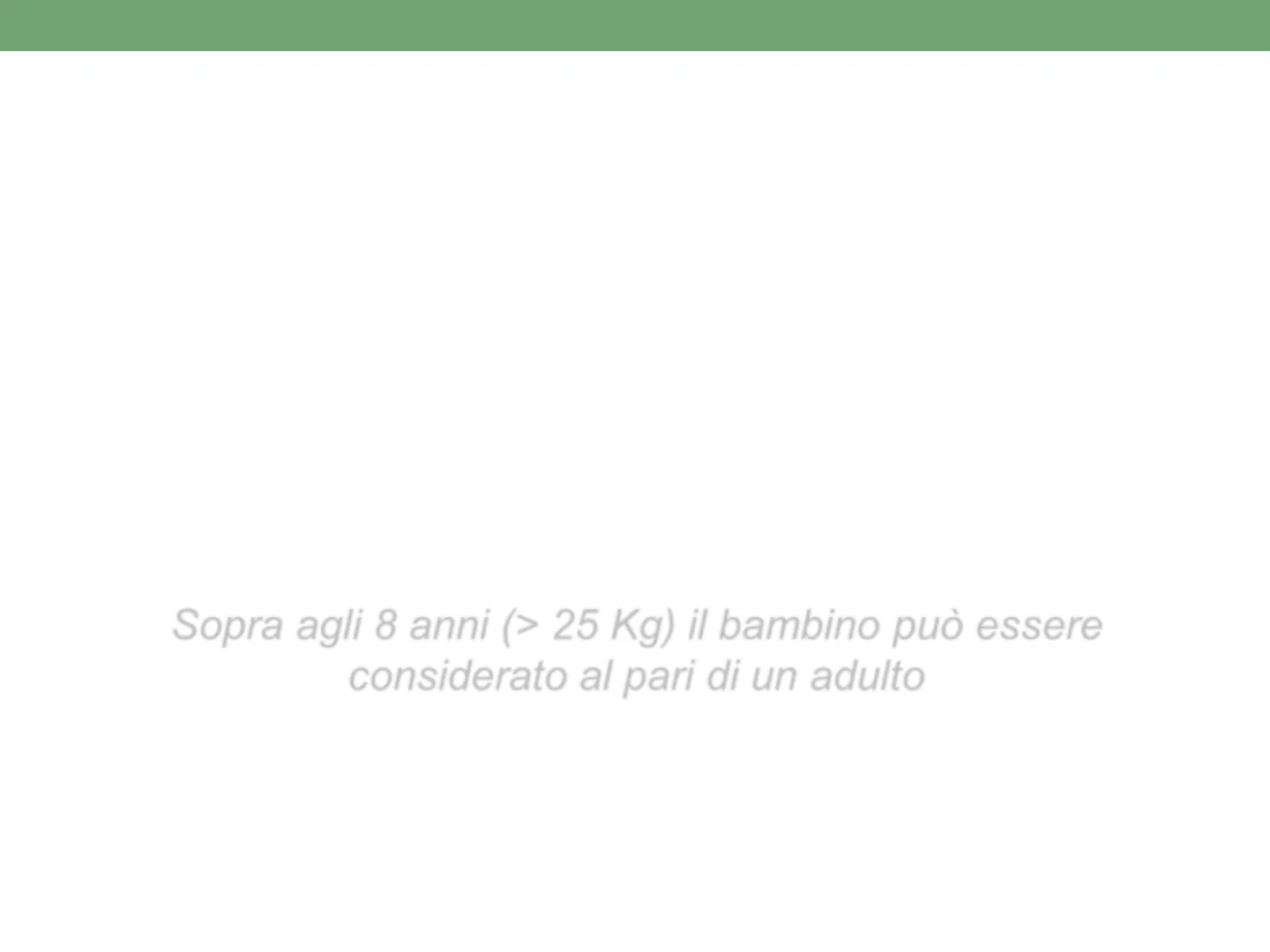 Neonato : da 0 a 28 giorni Lattante: dal mese all'anno di vita Bambino: da 1 a 8 anni Sopra agli 8 anni (> 25 Kg) il bambino può essere considerato al pari di un adulto