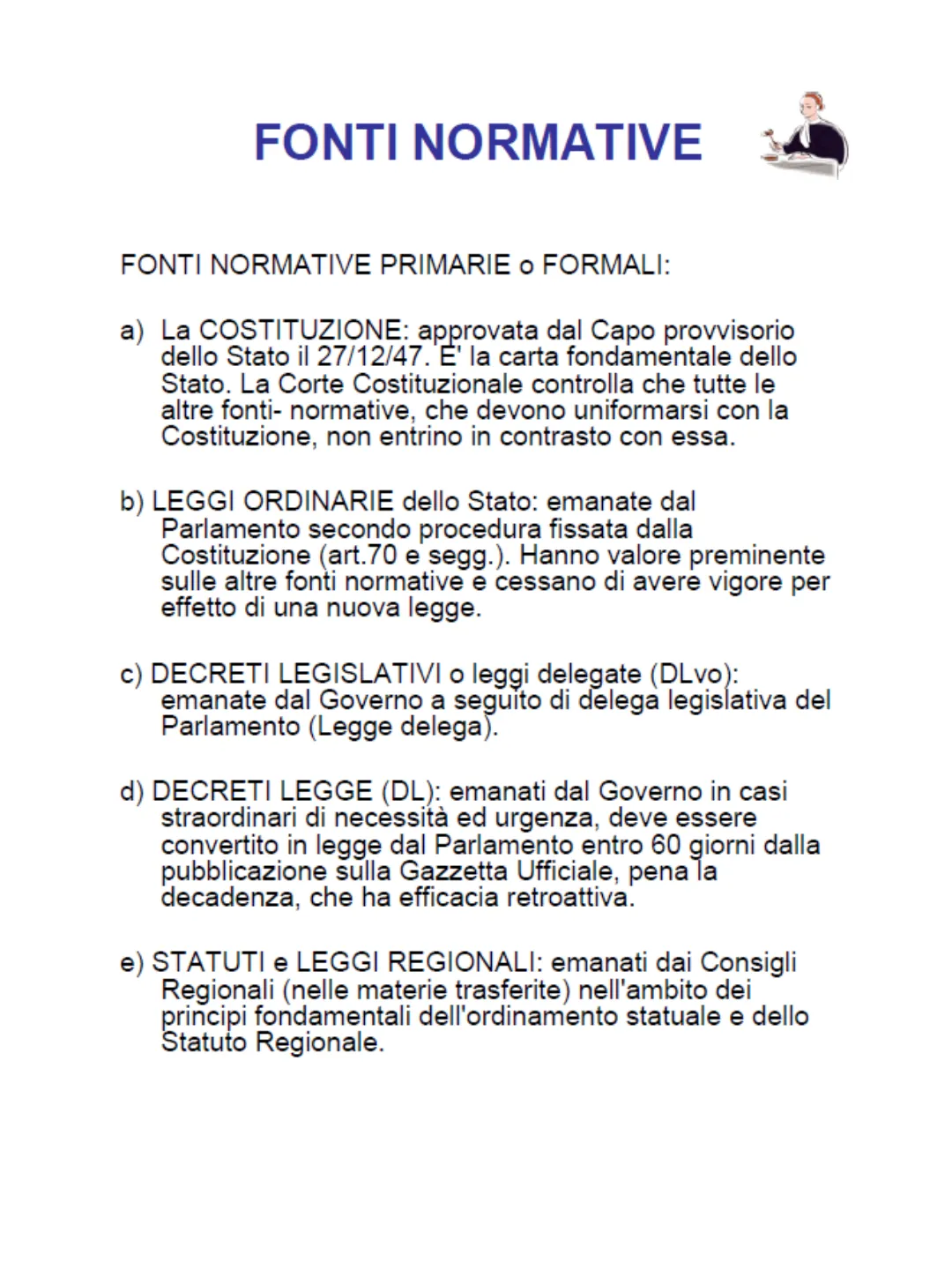 FONTI NORMATIVE FONTI NORMATIVE PRIMARIE o FORMALI: