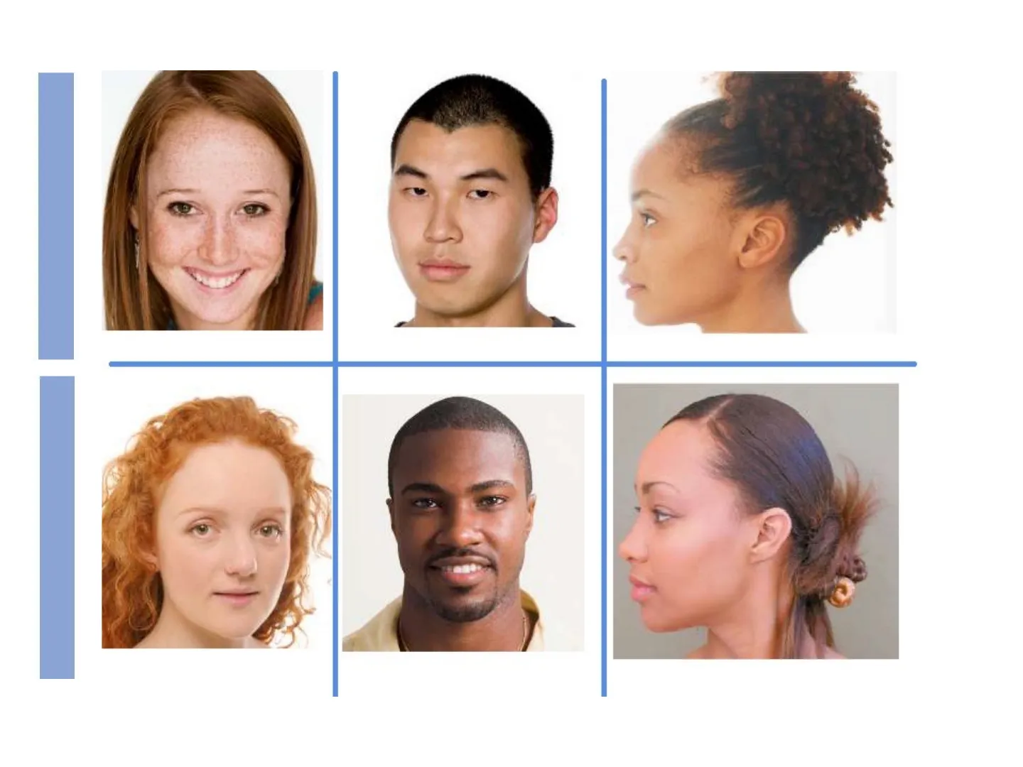 assenza di lentiggini attaccatura dritta lobo attaccato